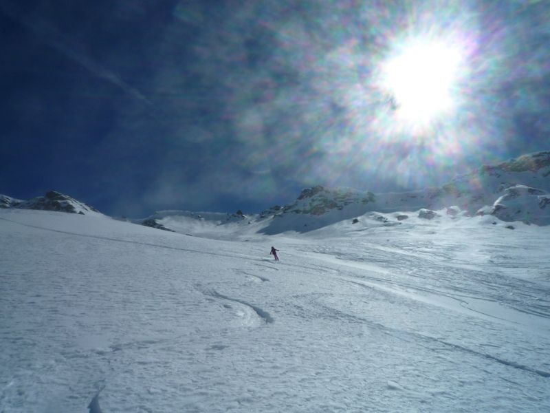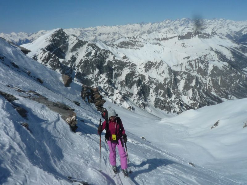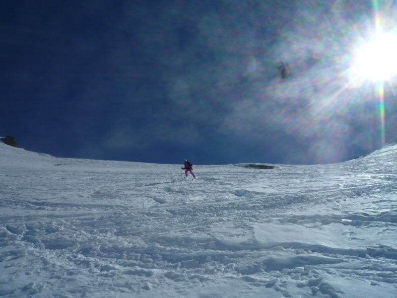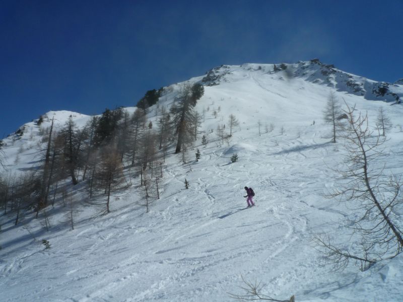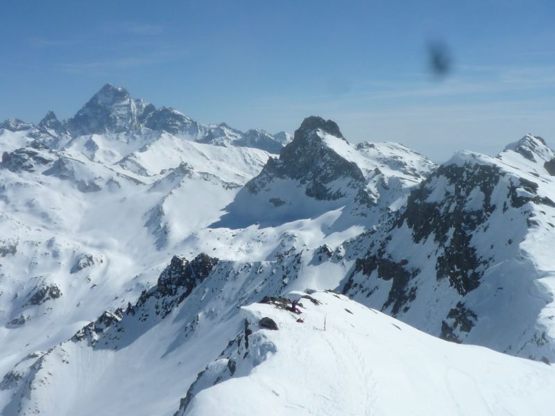 Beau panorama sur le Viso et le pain de Sucre.Les contre pentes N restent bonnes à skier,il vaut mieux éviter toutes les parties NE plutôt croutées.
