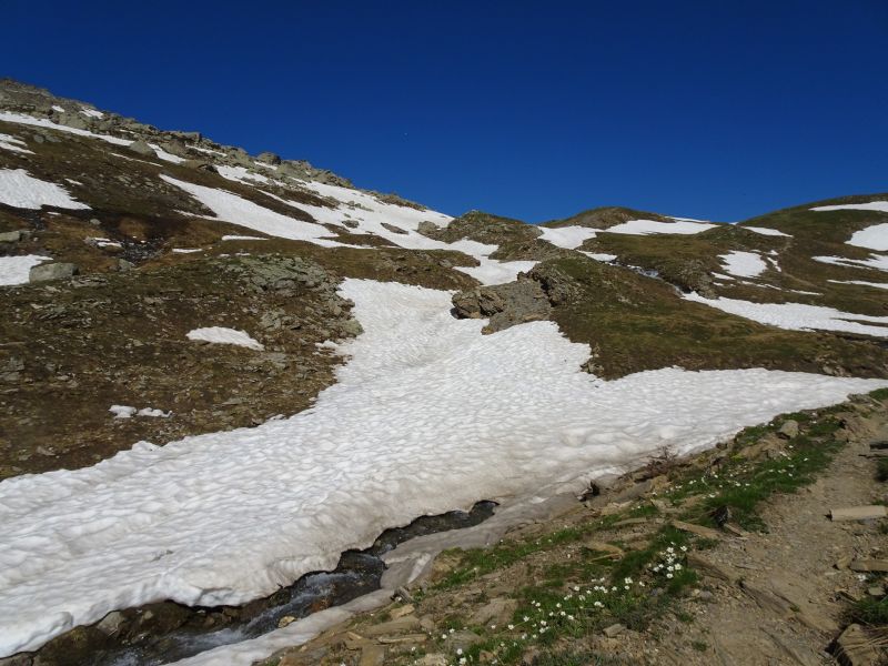 Dernière Vautisse de la saison. Belle durée depuis octobre 2016 mais en réduction d'années en années sur la fin. Conditions météo agréables mais neige rendant le ski obligatoire...pour éviter la natation. Seuls les 400 derniers mètres offraient un ski agréable quand même. Le reste étant plutôt un purgatoire. Déchaussage au même point que le 8 juillet 2013 ???