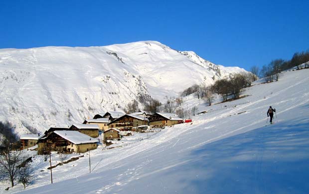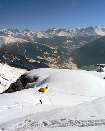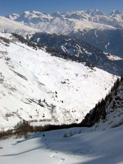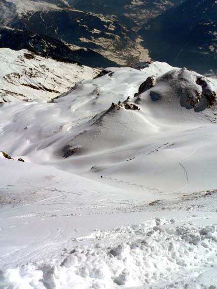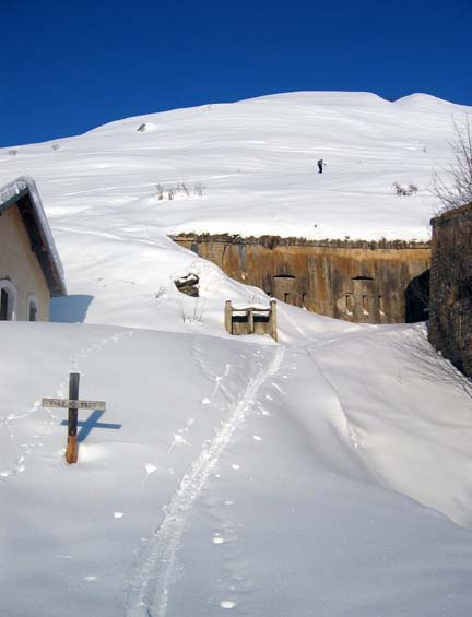 Contraste entre ce versant skiant et non équipé et le chapelet d'usines à skier en face. Vu cinq renards dont un qui est allé jusqu'au sommet (traces récentes).