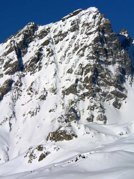 boucle depuis les Echines Dessous. Montée par les forts Truc et de la Platte jusqu'au sommet coté mais non nommé au-dessus des deux Antoines. Descente selon une ligne sud-est en passant par le couloir au nord du fort de la Platte. 40°/100. D+/- : 1300. Ski : 3.2