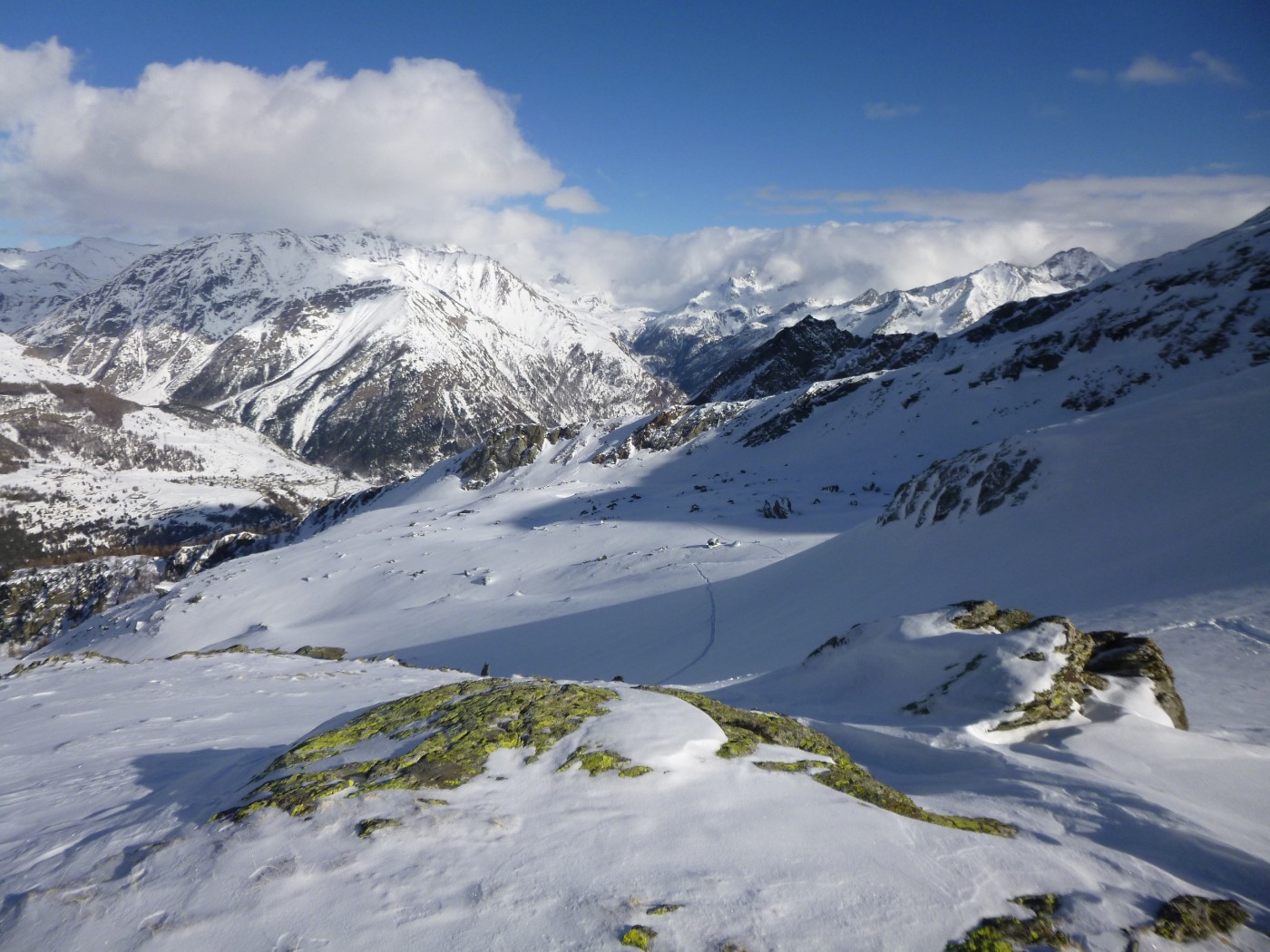 Crétaz, les Ors, Vermiana, tour de la Tête du Gavio par l'est et le nord. Sommet par sa crête ouest. Descente par les pentes NE puis sur le vallon du Pousset. Retour dans le vallon de Vermiana en franchissant la crête un peu au-dessus de la cabane du PNGP.