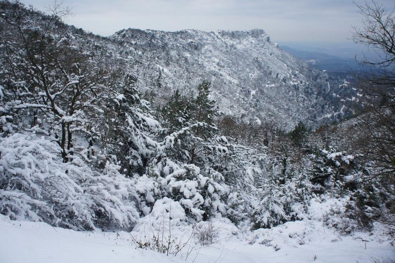Suffisamment rare pour être décrit: la neige tombe pratiquement chaque hiver ici dans l'arrière pays marseillais, mais le froid vif et sans dégel diurne est plus rare. Alors avec les vieux skis, tout devient possible même avec une faible couche. Sympa..