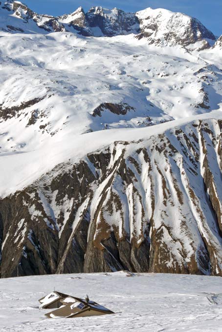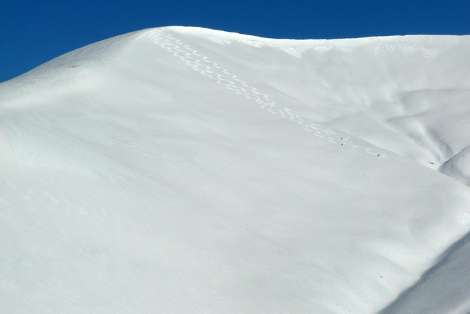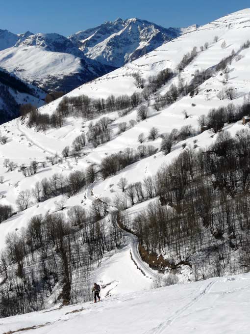 Skiabilité trsè bonne en toutes orientations et secteur bien enneigé mais bruyant : les reprises helico de l'alpe d'huez sont incessantes. Salut aux trois dont j'ai suivi la trace (rassurante) avant de la quitter pour descendre un peu plus bas.