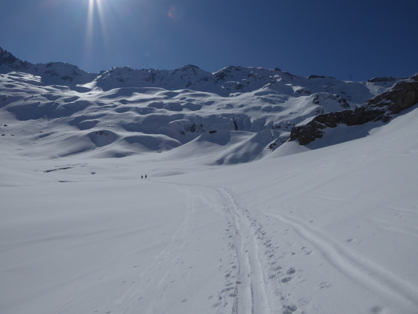 La neige récente colle un peu sous les skis dans les pentes N. Dans les orientations sud ça chauffe vite. L'après-midi c'est mou et collant.
