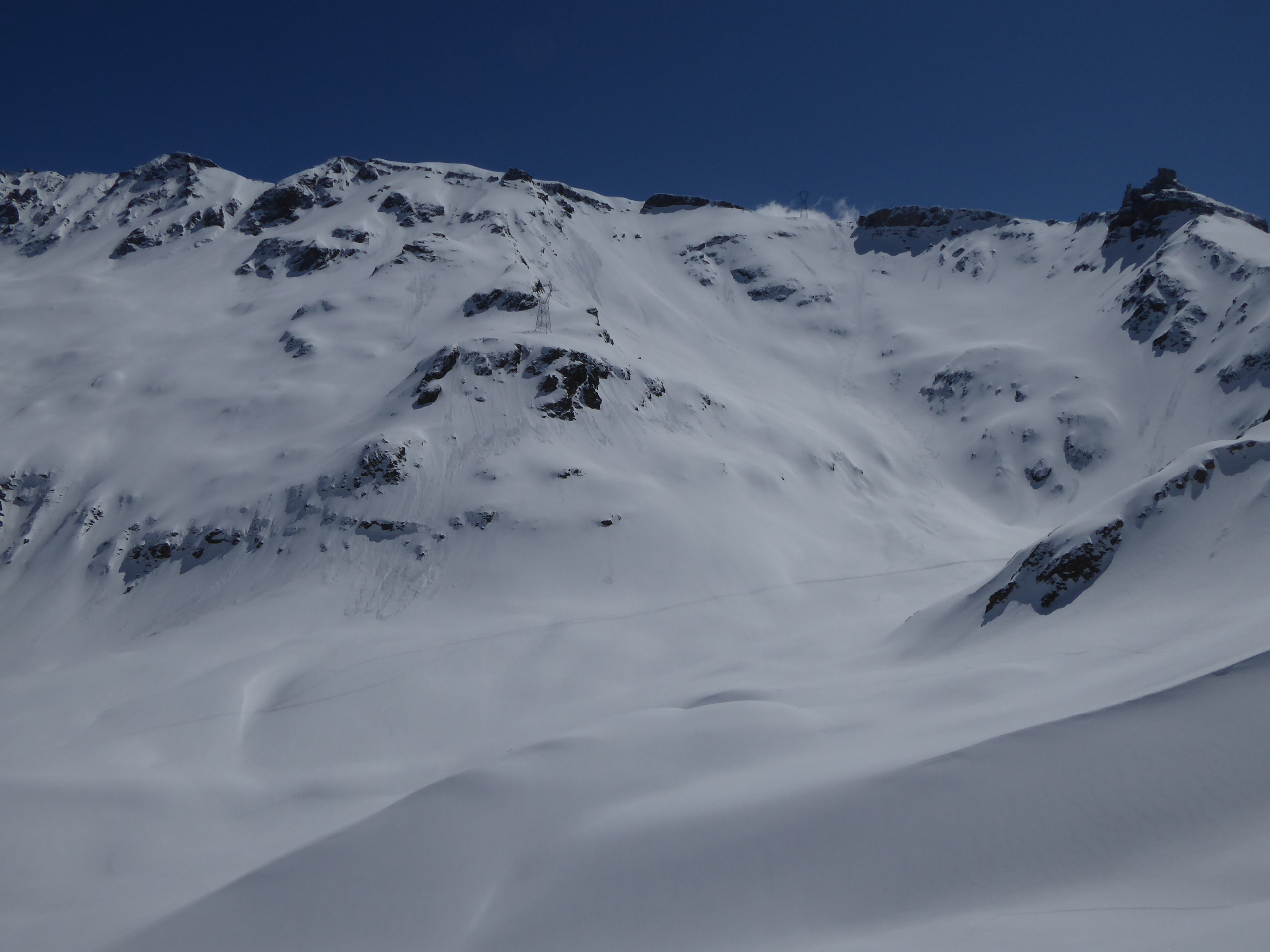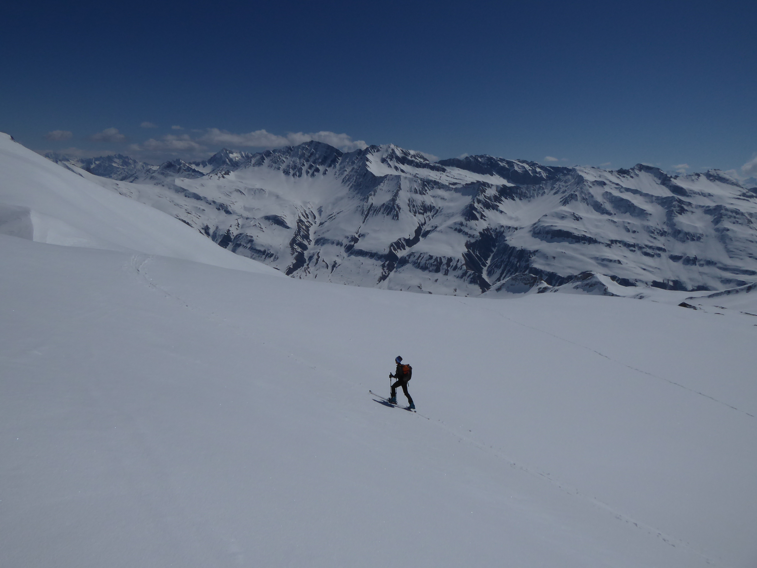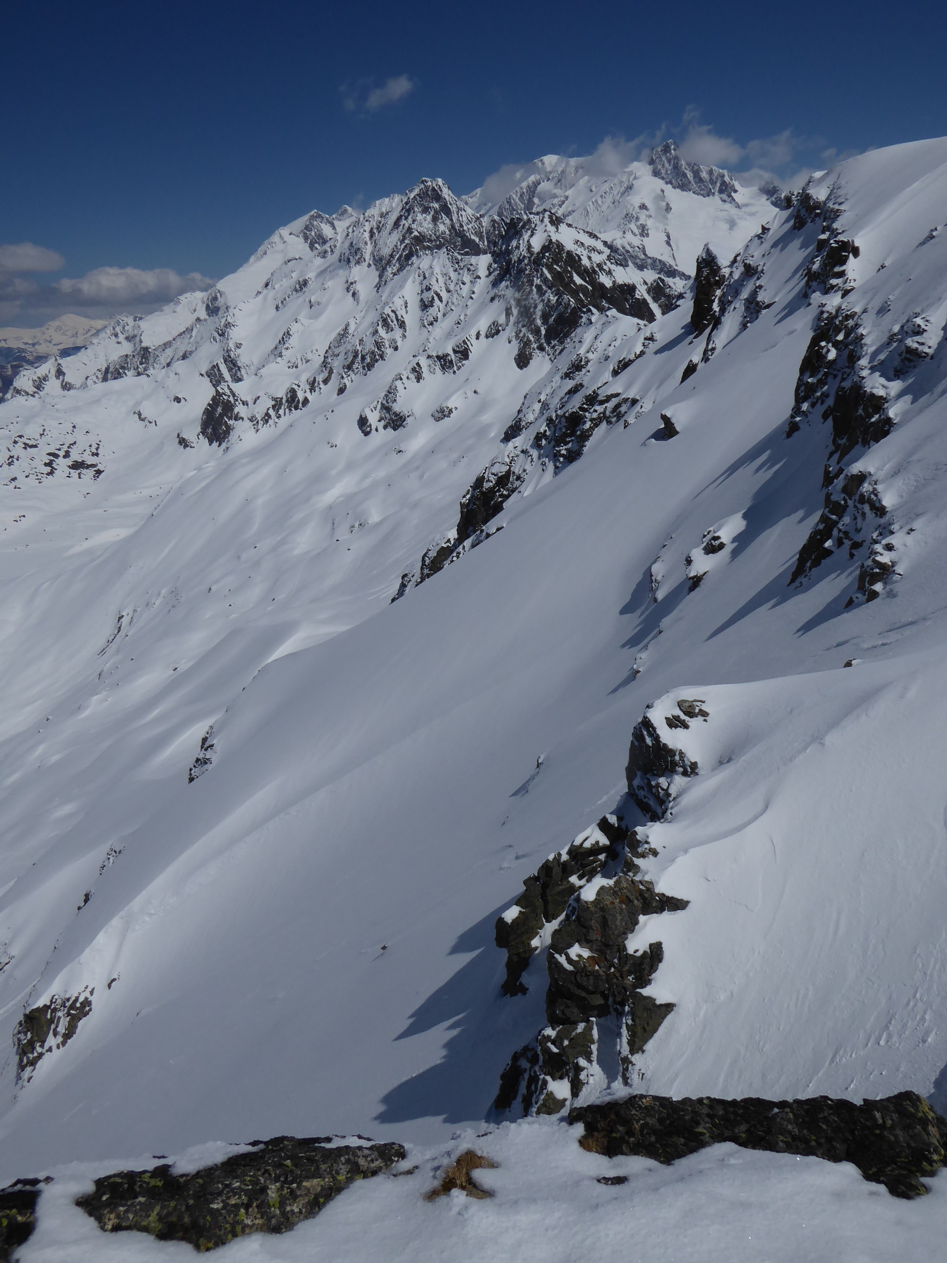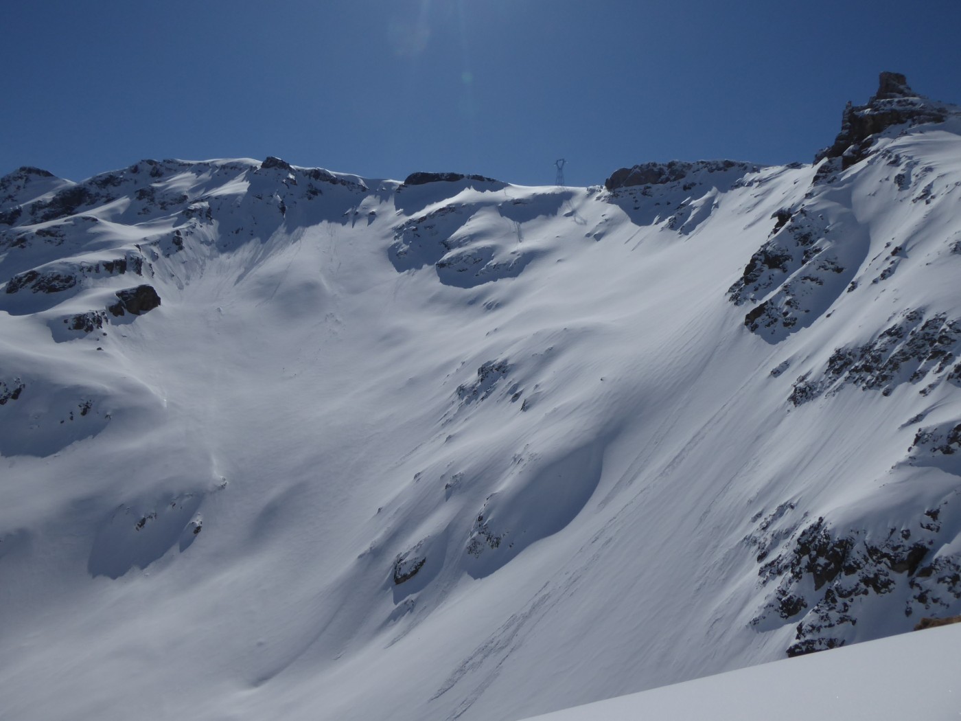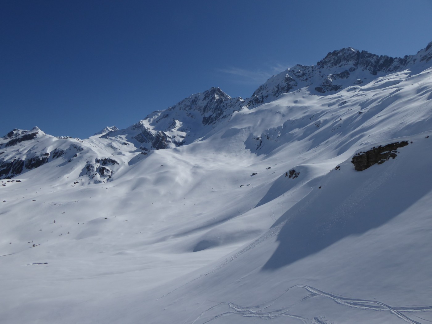 Encore une belle descente en poudreuse. La pente NO descendue est belle et assez soutenue (35°/400).