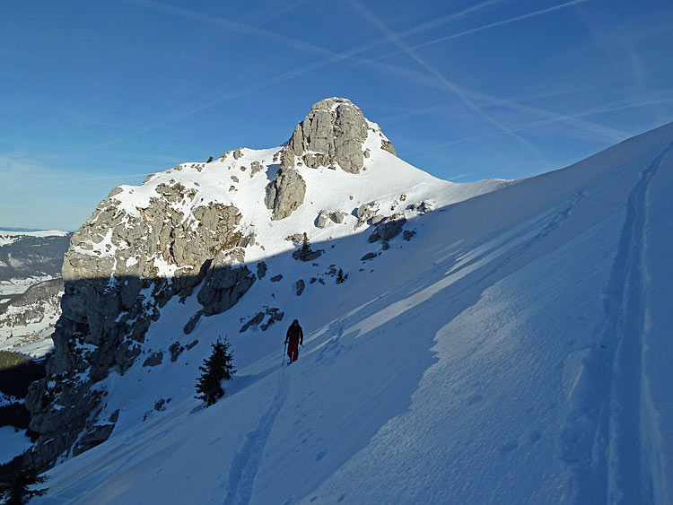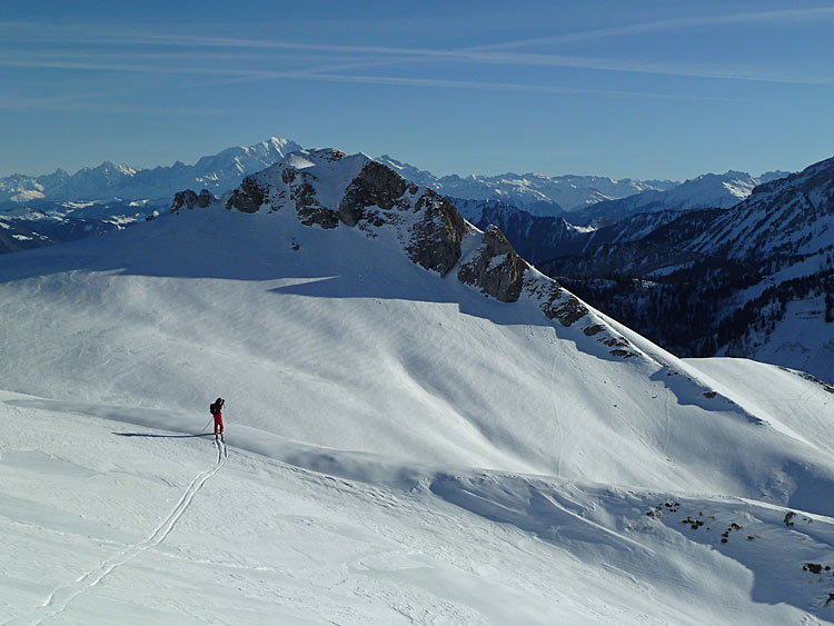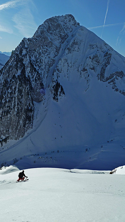 Tirebras : l'autre "bonnet" bauju, point de vue parfait sur l'imposant versant nord du Trélod (couloir nord skié ce jour en boucle en bonnes conditions).