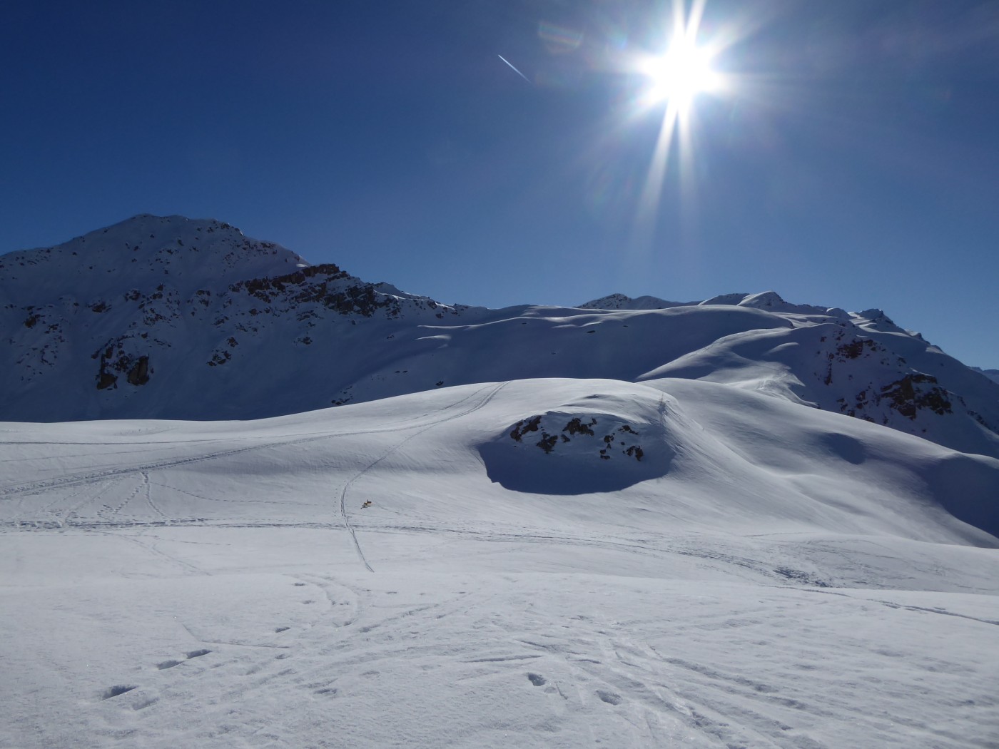 Montée par le Chapelet et par les clairières jusque Plan Monnay (2111). J'ai suivi l'arête nord le long des pistes de la station et au delà jusqu'au replat 2370 à l'ouest du sommet. J'ai remonté les pentes sud jusqu'à l'épaule ouest 50m sous le sommet.