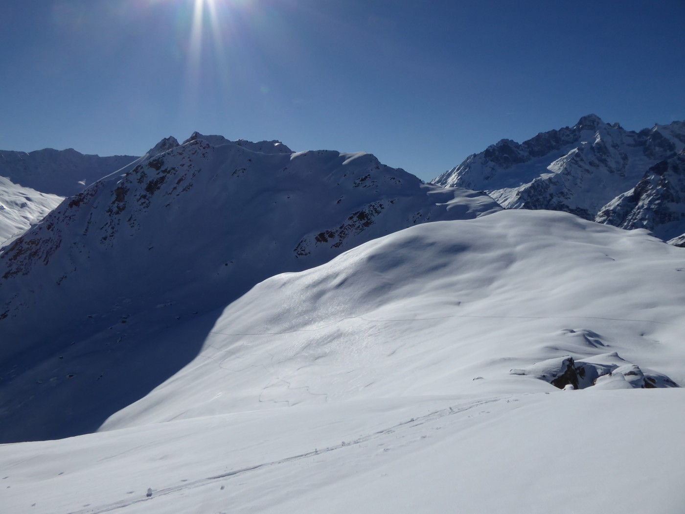 Course panoramique. Les remontées de la petite station ne sont pas trop gênantes. Les pistes m'ont permis d'échapper à la croute dans le bas de la descente (sous 2000). Je ne suis pas allé au sommet, les 50 derniers mètres en neige humide ne m'ont pas inspiré confiance.