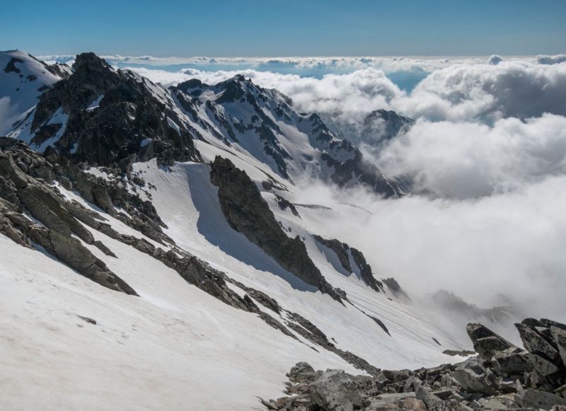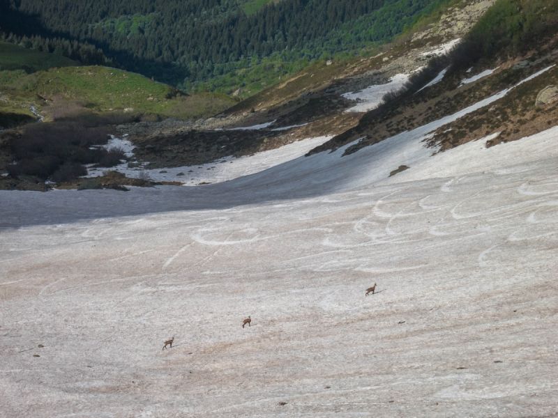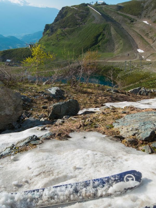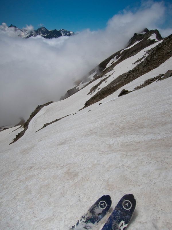 Sublime sortie de ski d'été, neige lisse parfaite et lumière démente. Si on part à pied de Prapoutel, le ratio ski/marche est de 80/20 ; avec le TS il passe à 95/05 !!! Pour ma part, ce fut un mix des 2 (montée TS, descente à pied vu l'heure). Tous les couloirs et toutes les combes passent au-dessus de 2000 m même en plein sud !