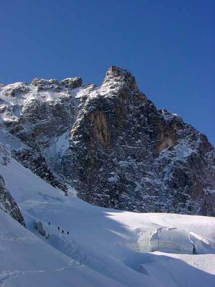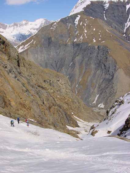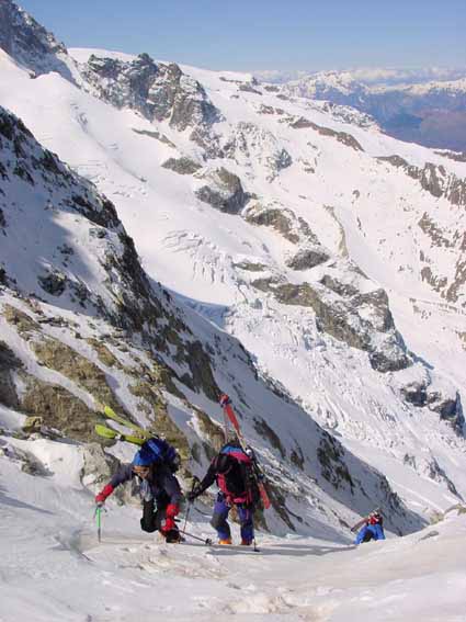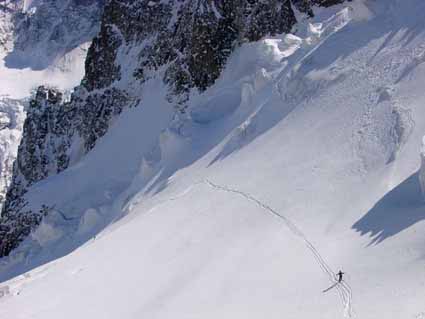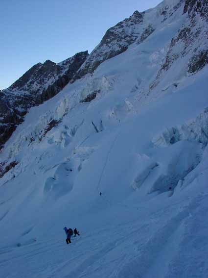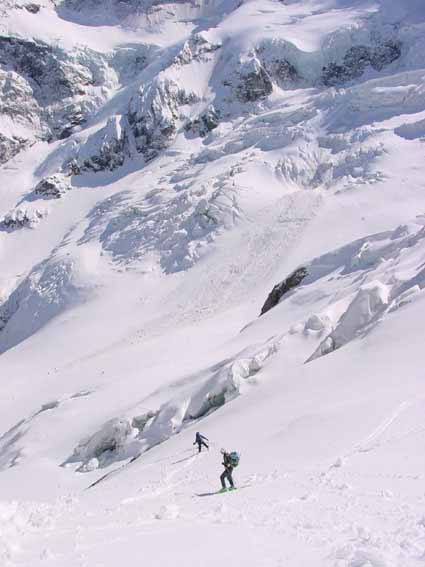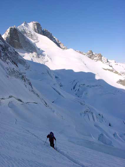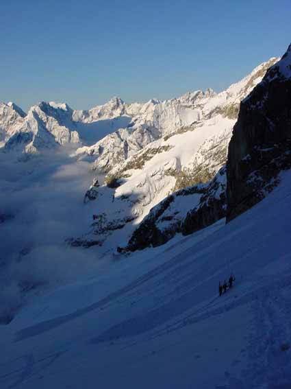 *du Promontoire atteint le 16 (cf course 02-116) : ->brêche de la Meije (rappel 30m) ->rimaye Gravelotte->Serret du Savon ->Aigle> glacier de l'Homme (rive gauche pour trouver la transfo puis sur le bas, rapide déchaussage pour rejoindre la rive droite et skier quasi jusqu'en bas). D+ : 800; D- : 2300
