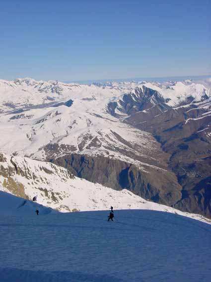 Merci à Jibé Mang, guide à Chamonix, qui a eu l'intuition de ces bonnes conditions en Oisans, pour l'initiative de ce tour (j'en rêvais depuis un moment), une première pour nous quatre. Des paysages à tomber par terre, l'idéal pour découvrir cette partie du massif sous toutes ses facettes. Accueil chaleureux de Marielle Tuaz (12 ans de gardiennage au Promontoire !) et de Jeannot Faure, tout nouveau gardien de l'Aigle.