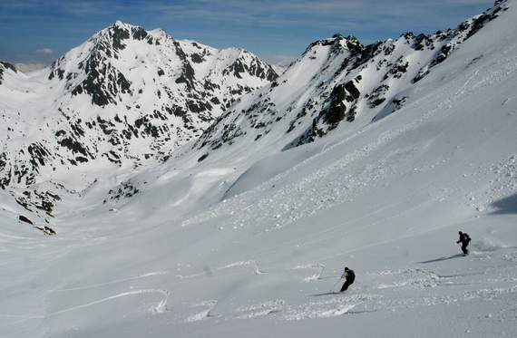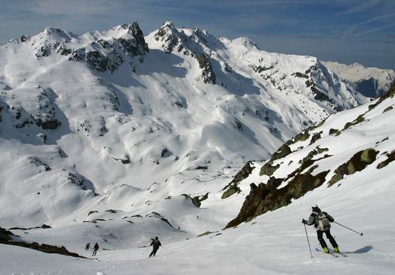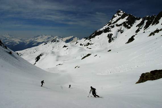 Un des plus beaux tours du Beaufortain et une parfaite illustration du formidable potentiel de ce massif si on accepte de "repeauter" (4x ici). Si la combe N de la Grande Pointe de Bizard est relativement connue (5 traces samedi), le Tour de la Pointe de Comborsier, pourtant assez évident, n'est quasiment jamais réalisé. Neige excellente sur presque tout le parcours (carton sur 100m dans la combe N). Le forfait 1h de la station d'Arêches permet de partir haut et de profiter pleinement des descentes (2300m de dénivelé négatif pour 1200m de montée).