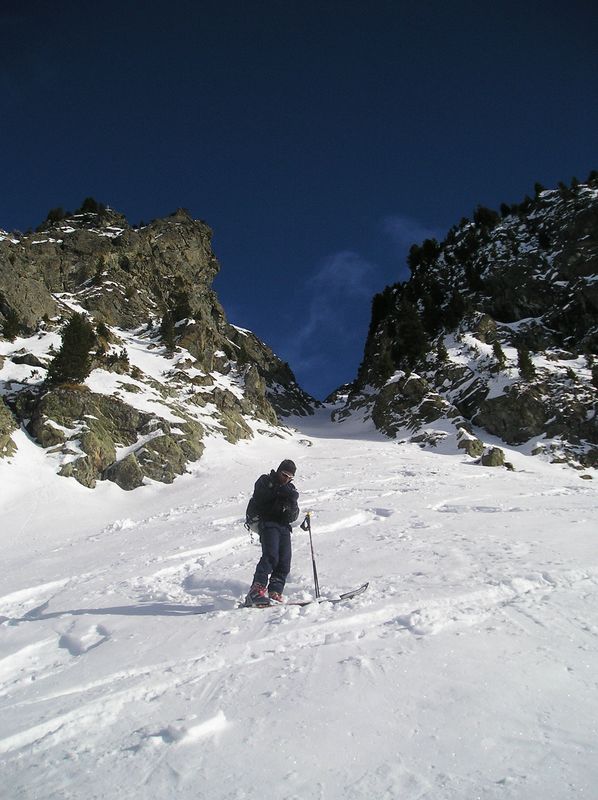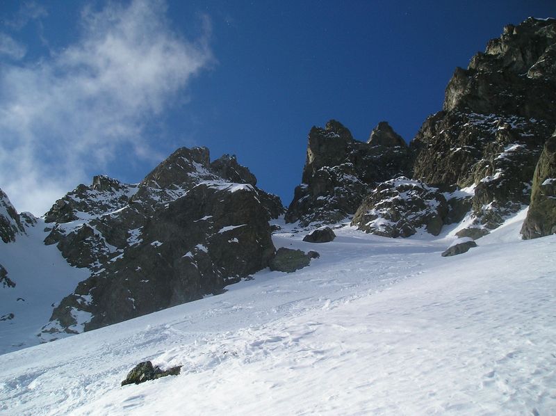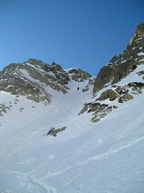 Partis pour le tour du Sorbier uniquement, une espèce de fourvoyage ou d'inattention nous mène un peu plus loin cad jusque dans la combe de la petite Vaudaine versant O. Mais au lieu de repasser le col comme décrit pour A7 on remonte la combe tout droit juqu'en haut. Elle finit par un petit couloir qui débouche sur la crête de Jasse Bralard. En tirant à gauche en sortant on rebascule dans la combe du col de la petite Vaudaine. Dans la bas de celle-ci on a bien tiré sur la gauche et descendu un petit couloir étroit en bonne poudre tassée. D+ = 1700m.