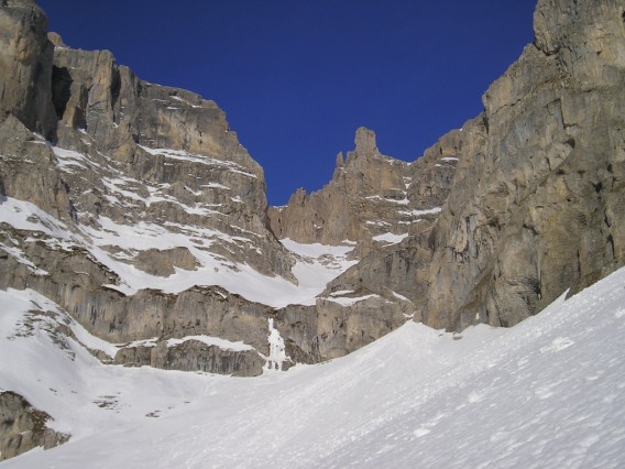 Neige bien transformée dans les orientations E à SO. Départ du couloir sud de la cavale vers 13h00: rive gauche début de transfo, rive droite bonne moquette (sur 05/10cm). La cascade de la fuvelle n'est pas enneigée en continu. Montée entre les salves de glace et de pierres, casque obligatoire -redéchaussage vers 2300 pour passer le ressaut raide. Bonne surprise dans le vallon de pivallon et les plagnoles: poudre tassée très agréable à skier.