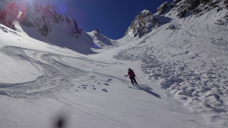 Neige fraiche dés le départ (5cm) se réchauffant rapidement au soleil. 20cm vers 2400m. Fond transformé dés 1800m et portant car gelé sous la poudre sur 10cm environ. Dessous c'est mou et mouillé. Dans les pentes de Lourette les gobelets de décembre sont bien là sous le mille feuille et des plaques sont parties jusqu'au sol sous les Chanas. Avec un horaire correct l'ensemble est sain.