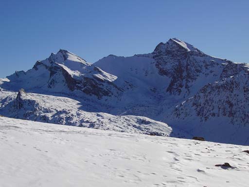 Du bivacco Boerio, même itinéraire que la veille, dans l?autre sens, jusqu?au lac de Longet, traversée en face, portage jusqu?au col de la Noire (on peut chausser entre 2750-2800 et le lac de la Noire). Descente du versant nord en tirant à gauche pour descendre un petit couloir (nombreux cailloux cachés sous la poudreuse) qui ramène dans des éboulis de blocs vers 2500 où on déchausse. J?ai rechaussé ensuite sur la piste jusqu?à la chapelle de Clausis (mieux avec skis-cailloux).