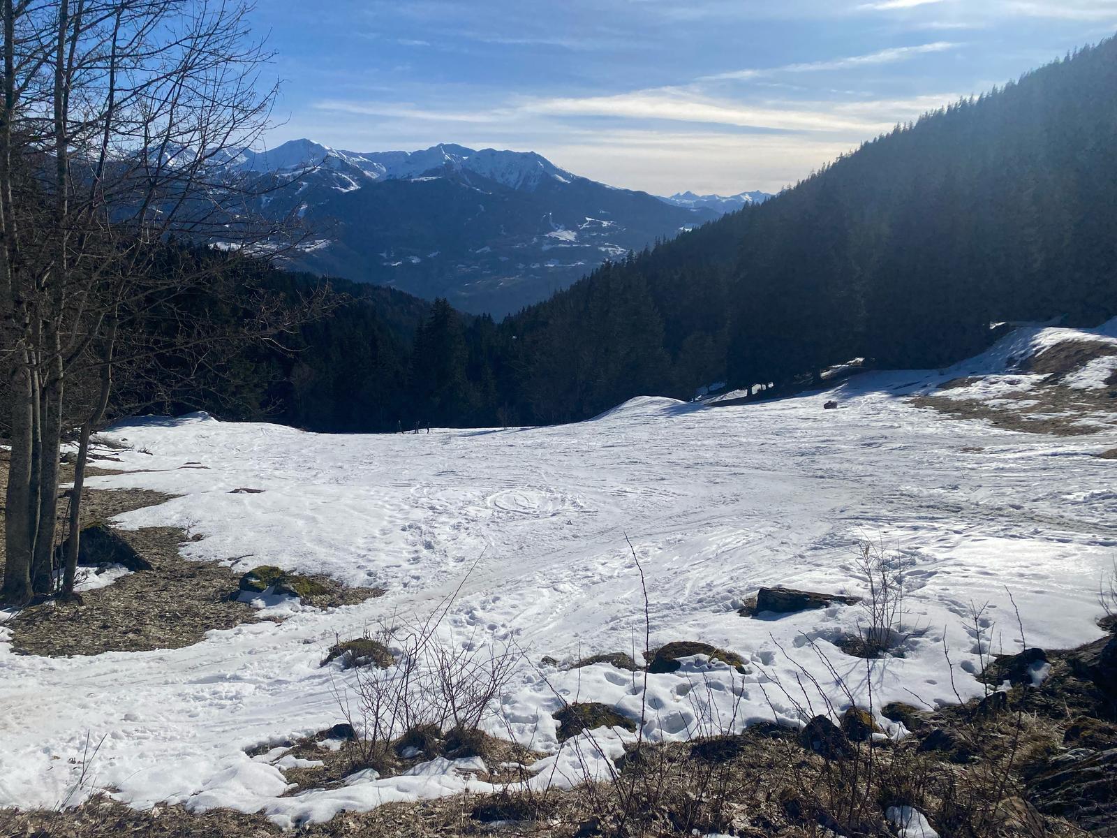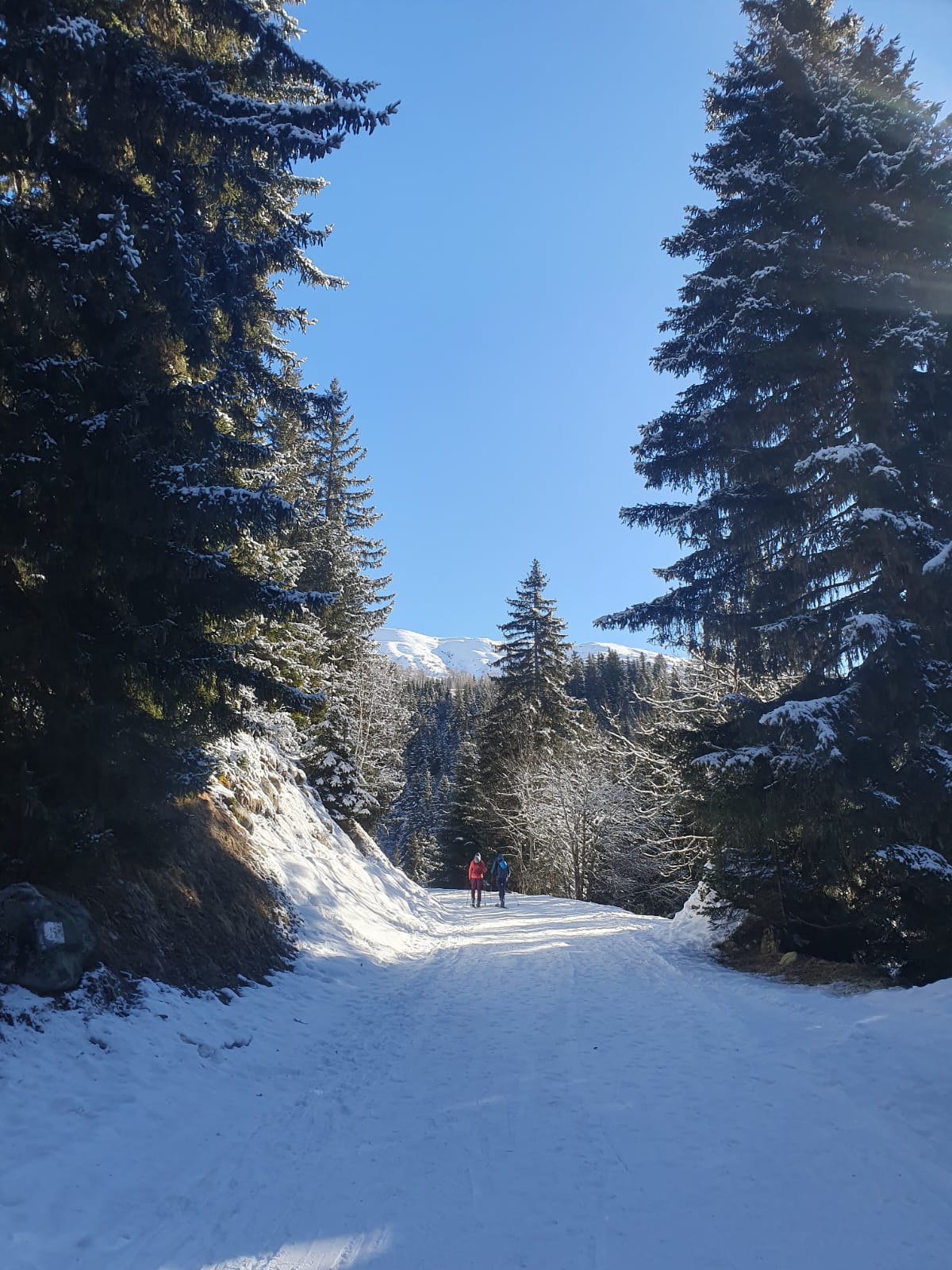 Enneigement limité du parking et sur la route/forêt jusqu'à 1800m.