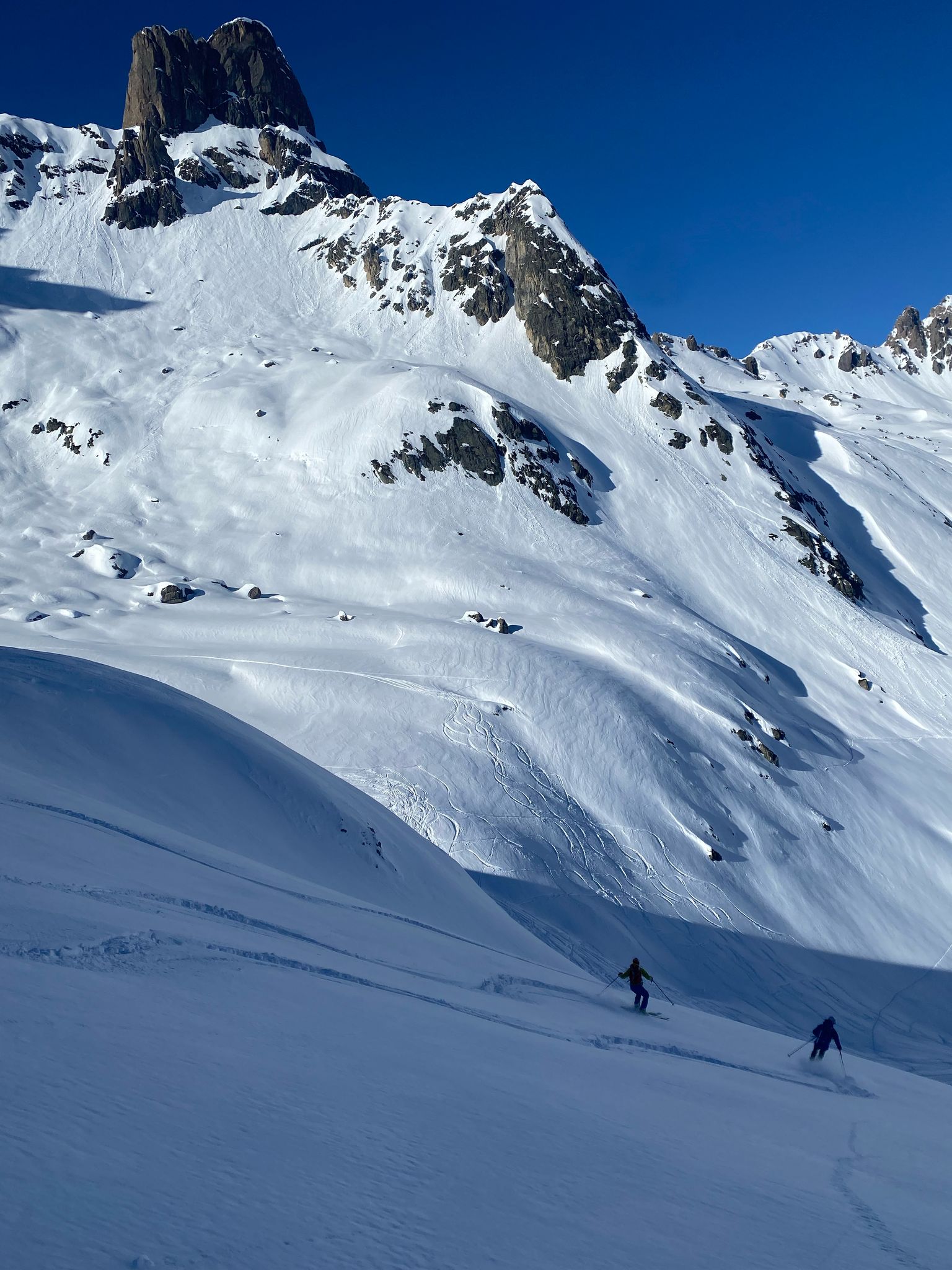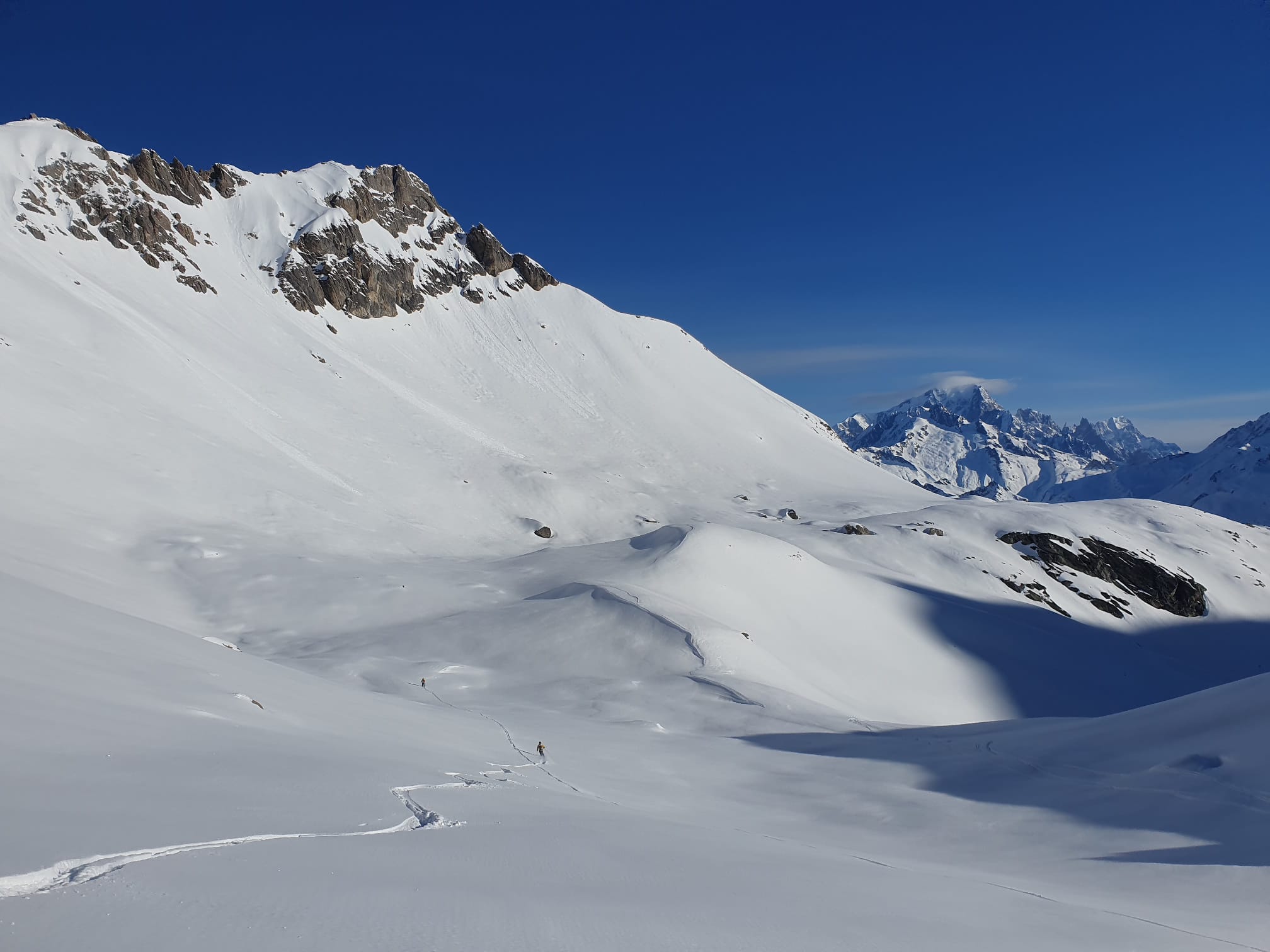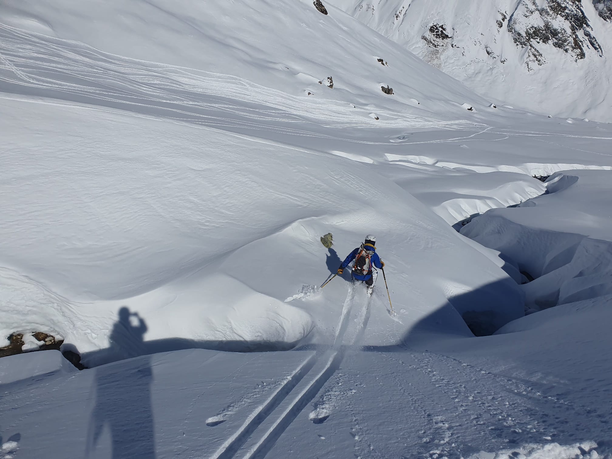 J2 du bon ski partout, même la face ouest derrière la brèche de Parozan qui était cartonnée en haut mais poudreuse ensuite. Crampons utiles dans la neige dure pour franchir la crête de l'aiguille du Lac.