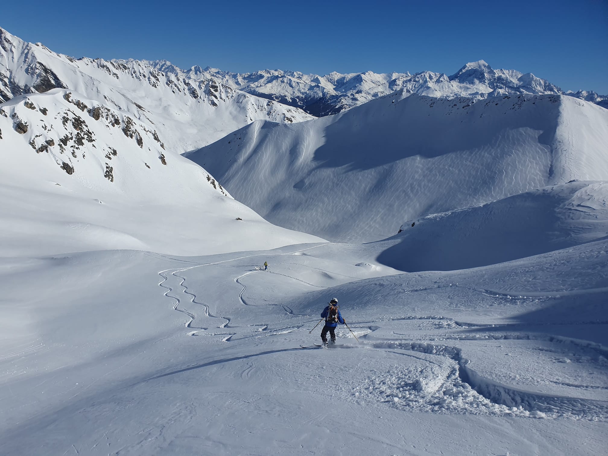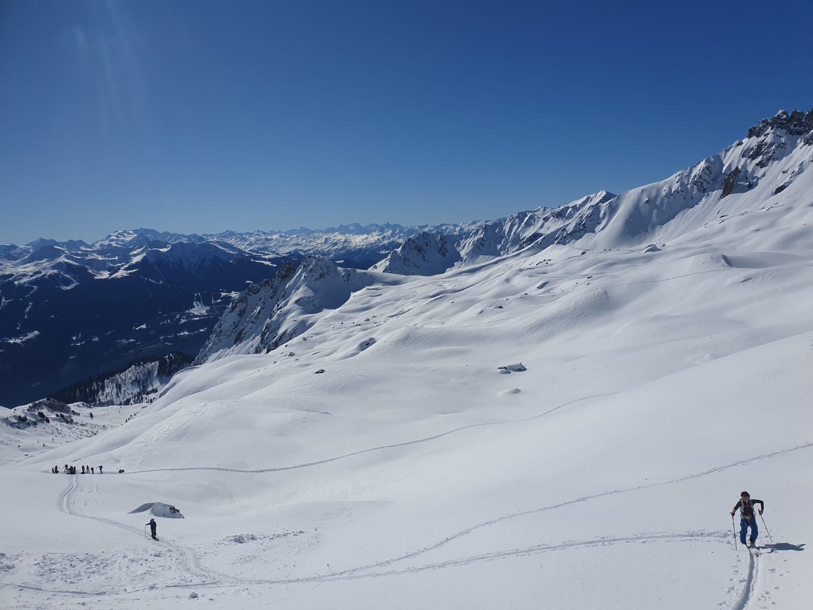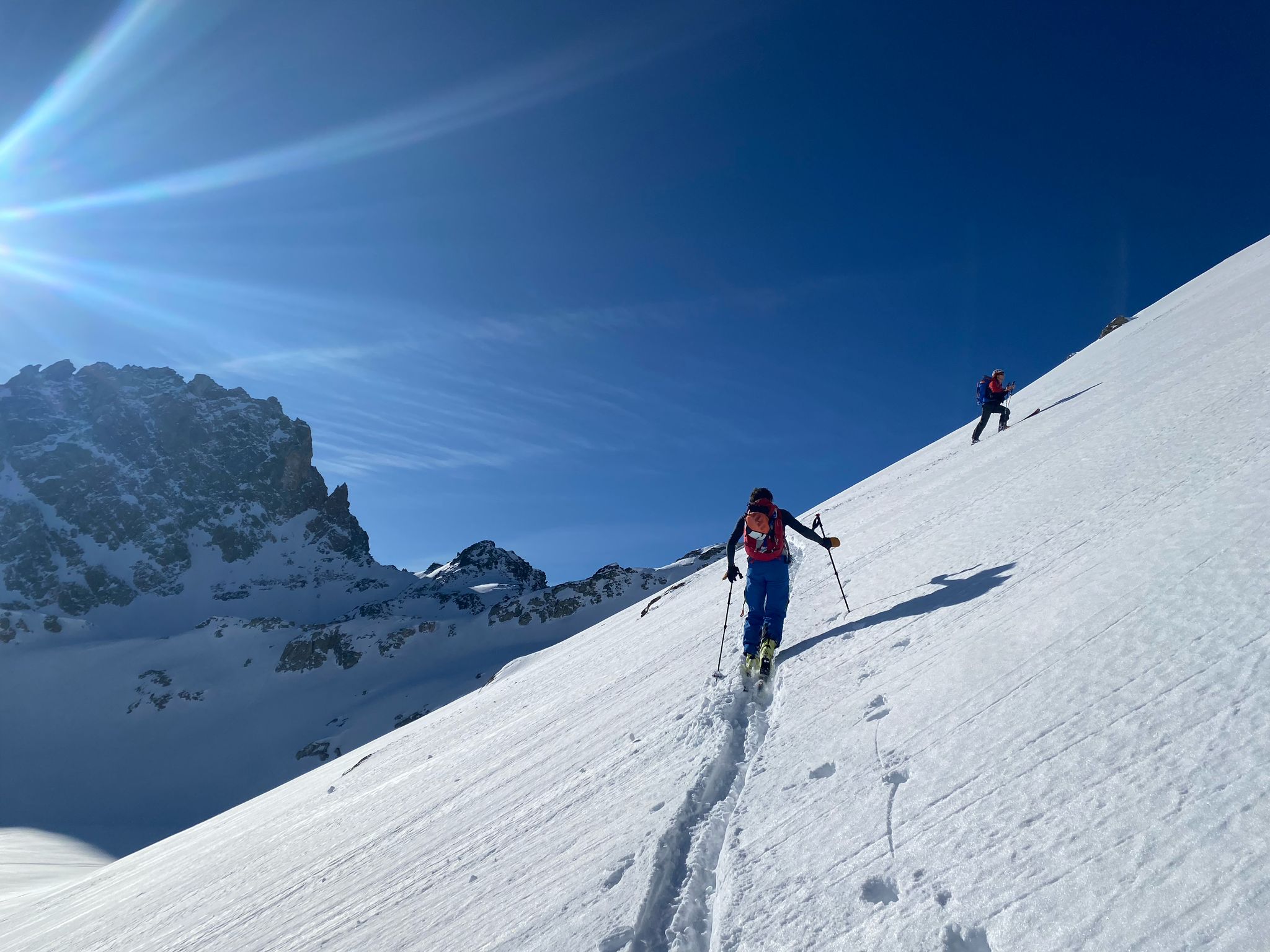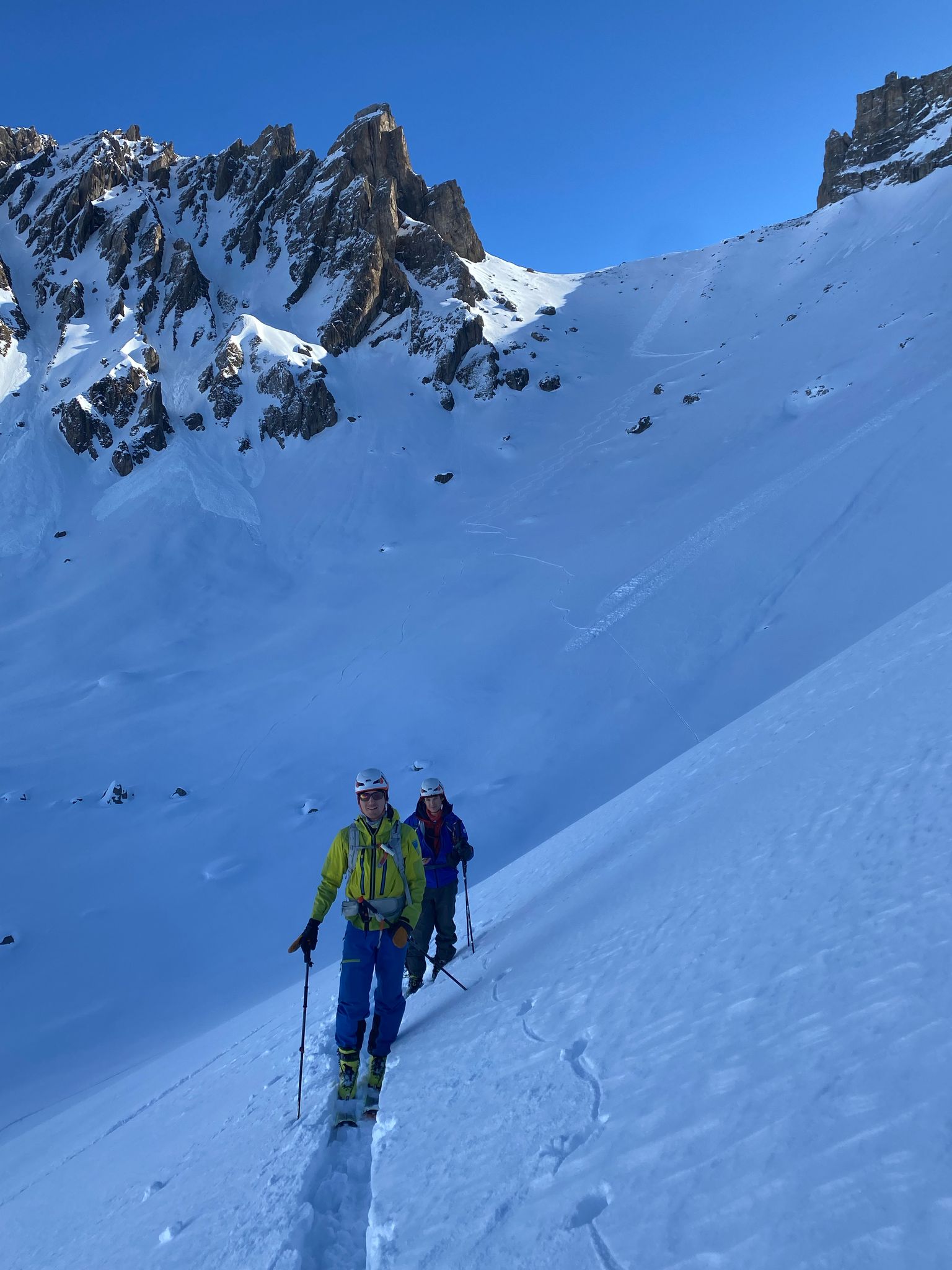J2 du bon ski partout, même la face ouest derrière la brèche de Parozan qui était cartonnée en haut mais poudreuse ensuite. Crampons utiles dans la neige dure pour franchir la crête de l'aiguille du Lac.