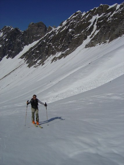 Selon H9. Dénivelé plus proche de 1500/1550, le topo donne 1250. La pente Est qui donne accès a la combe de Tré le Crot est très chaude, elle ne va plus être skiable très longtemps.
