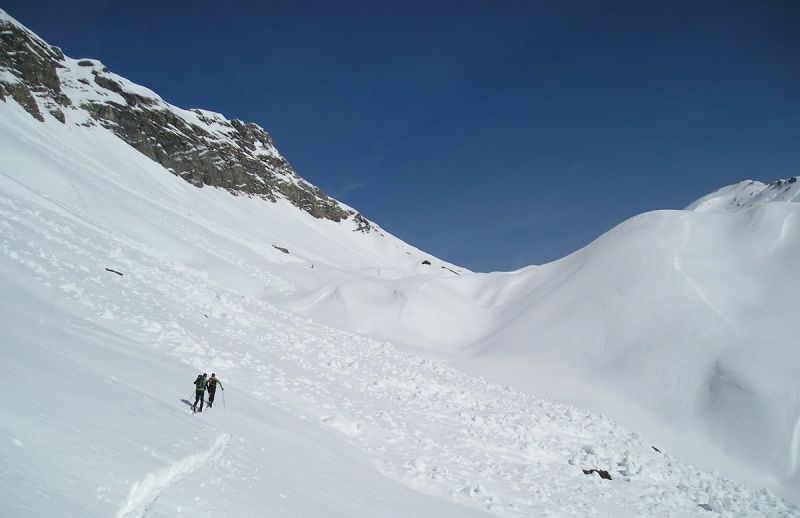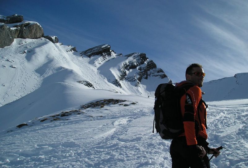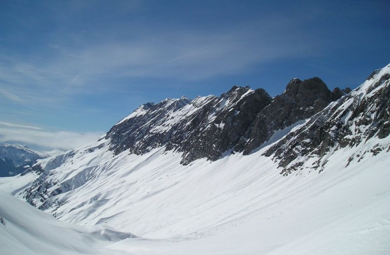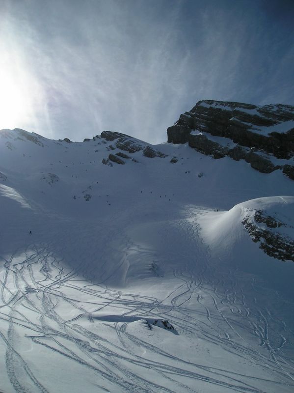 Un peu moins de neige récente de ce côté-ci du col des Aravis mais de bien belles conditions encore. Nombreuses purges en versant est.