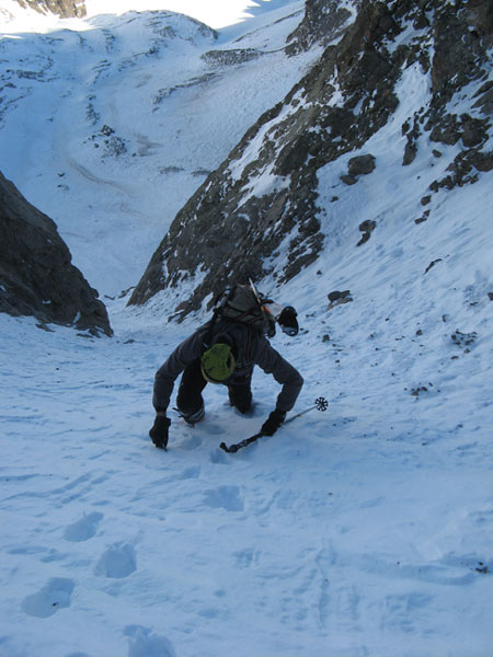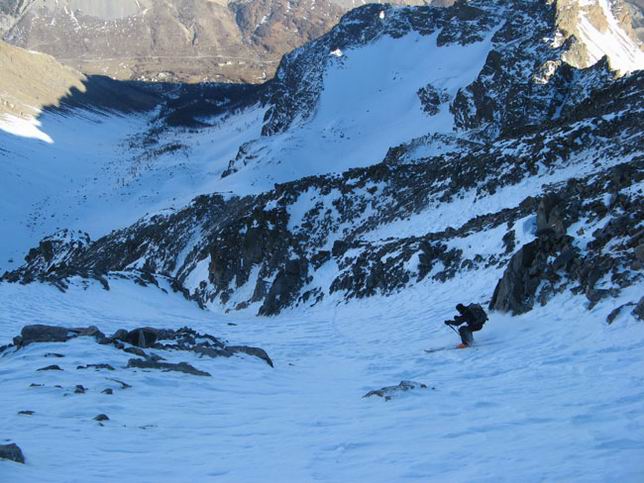 Les couloirs froids sont en poudre tassée avec qq sections ventée avec bon grip. En sud c'est transfo. Le vent a fait du mal, il y a certains couloir sans neige, A10 par exemple. Pas skier les 40 premiers m du couloir W, pas de neige !