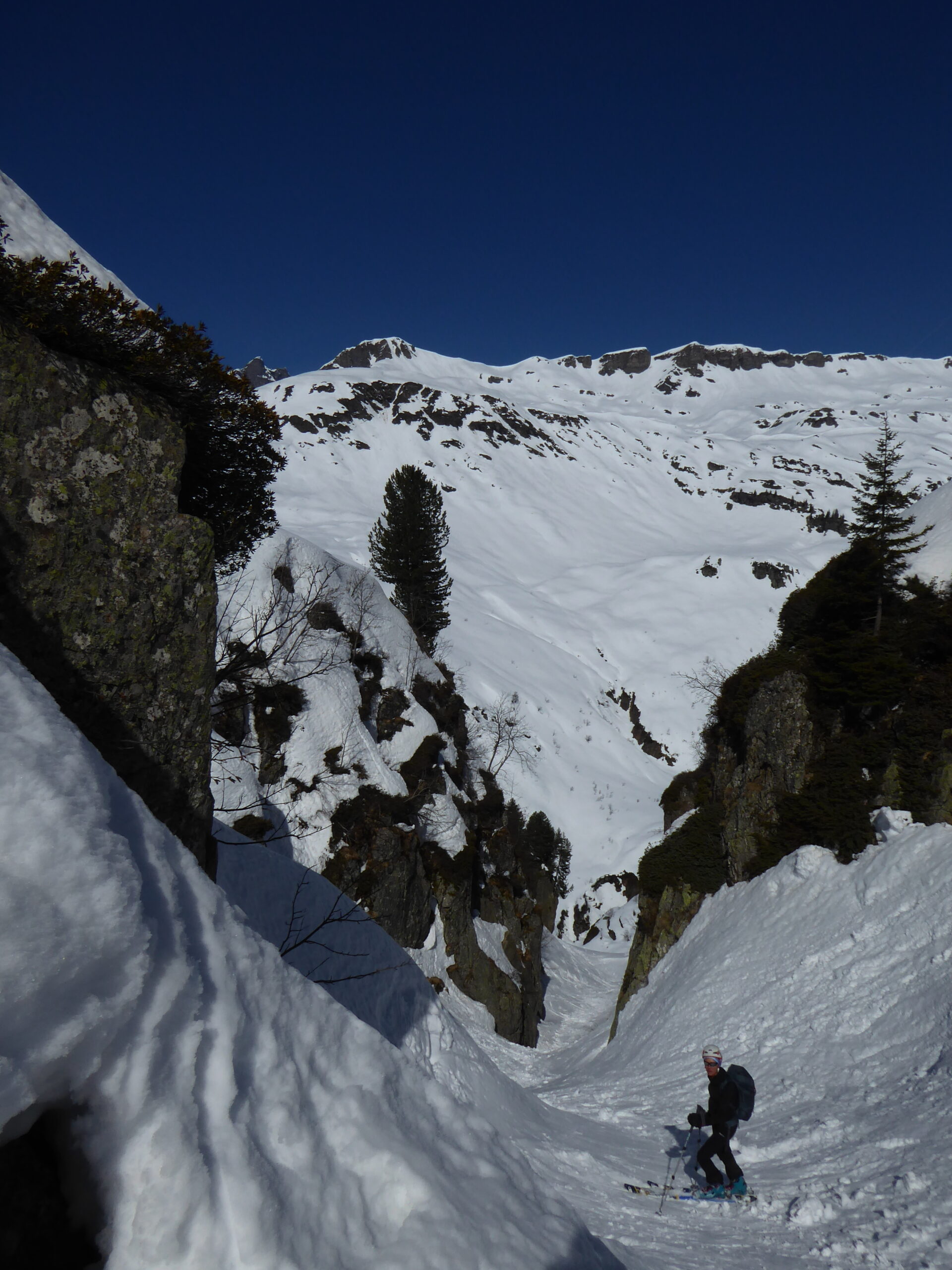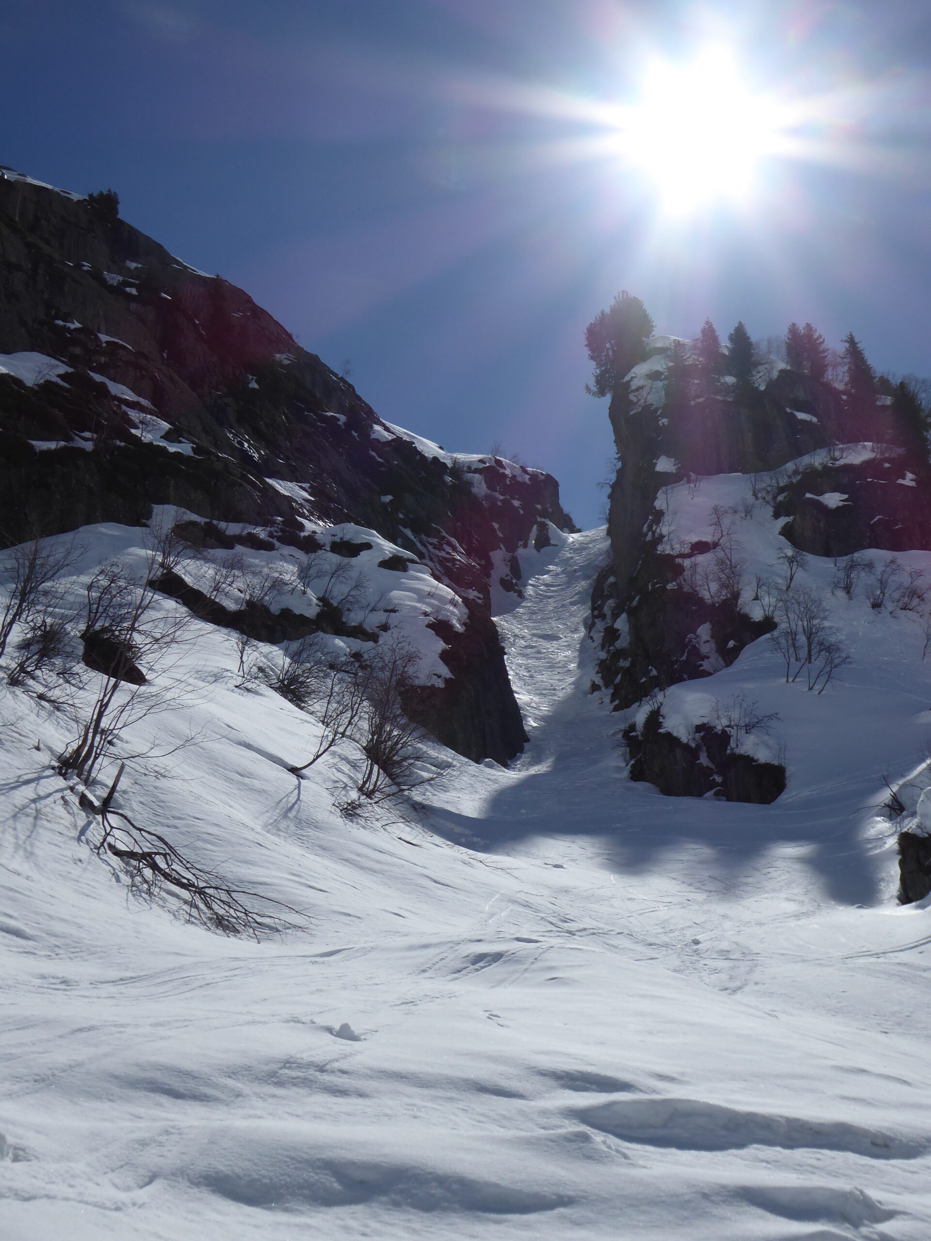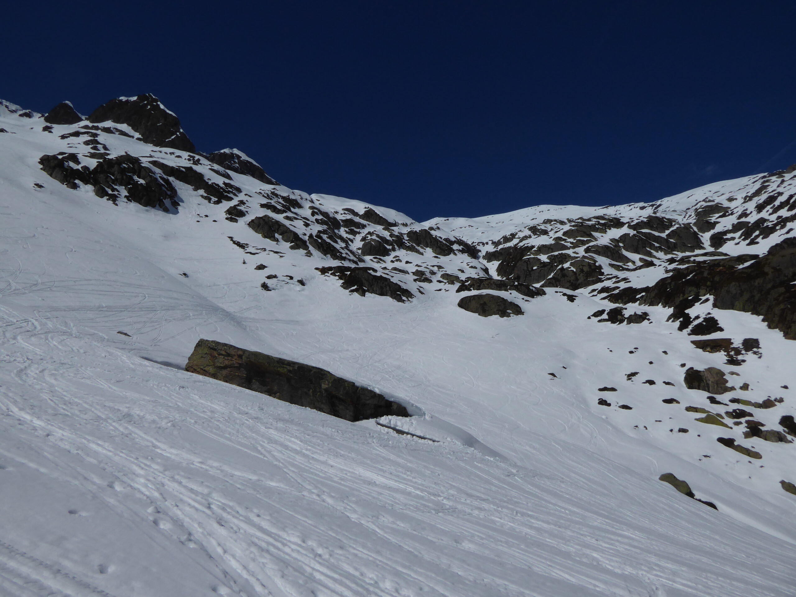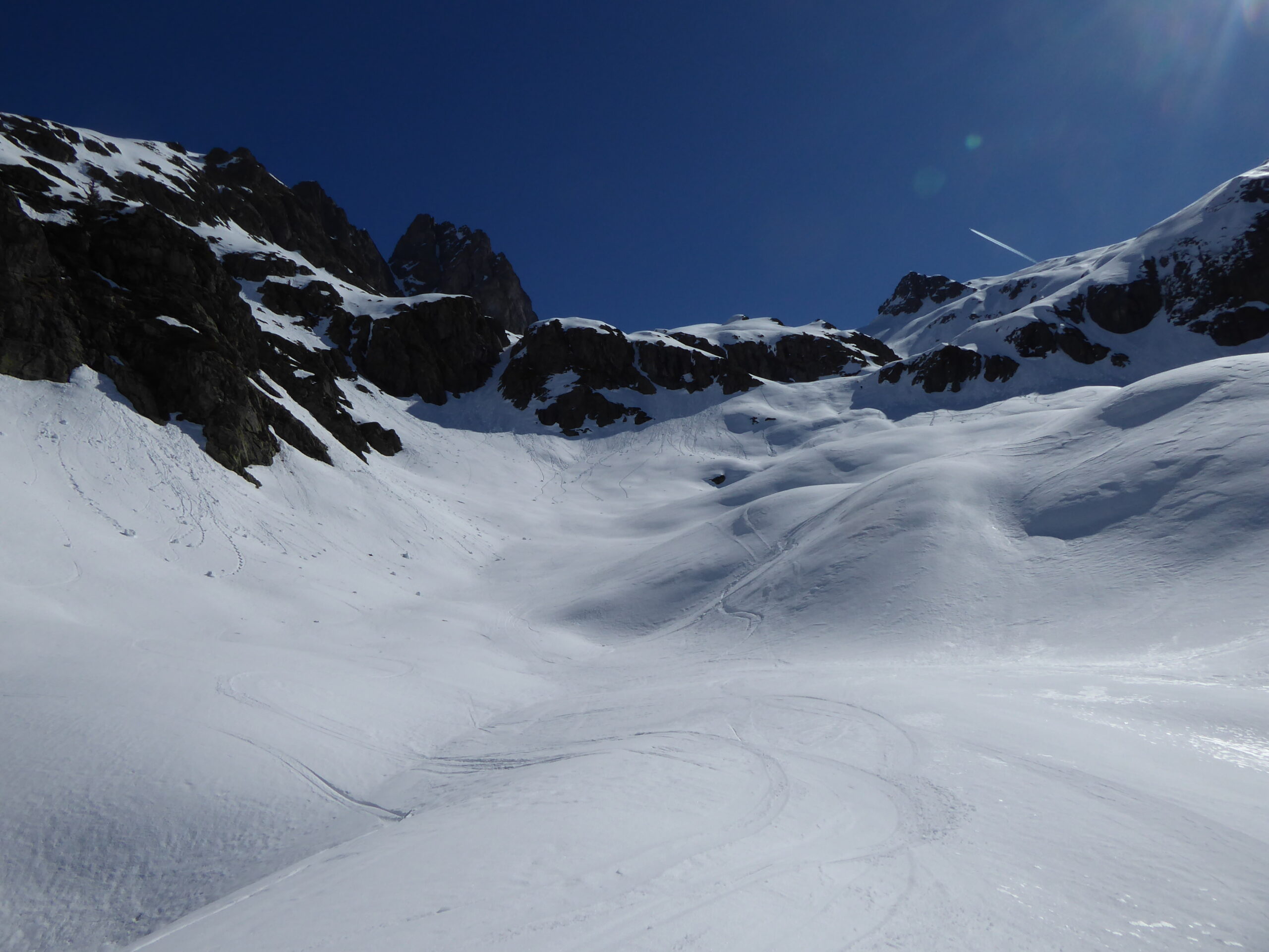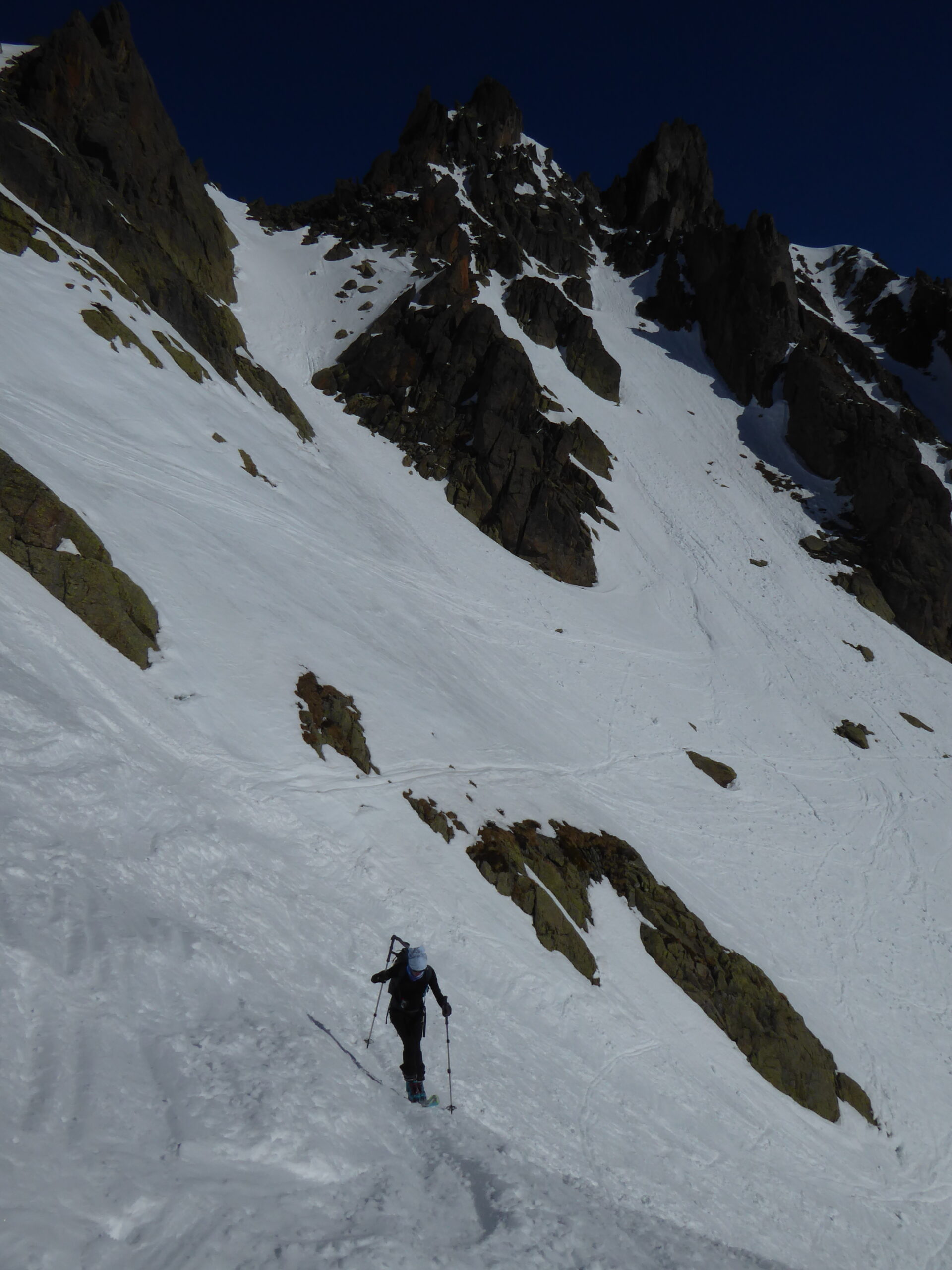 Bonnes conditions dans l'ensemble sur ce tour. Le ravin en bas de la combe du Pouce passe bien. Juste un passage étroit pourrait devenir délicat dans les prochains jours si la chaleur persiste. Le vallon de Bérard est très tracé mais bien enneigé. Descente à ski jusqu'au Buet. Quelques portions en terre commencent à apparaitre au-dessus de la Poya.