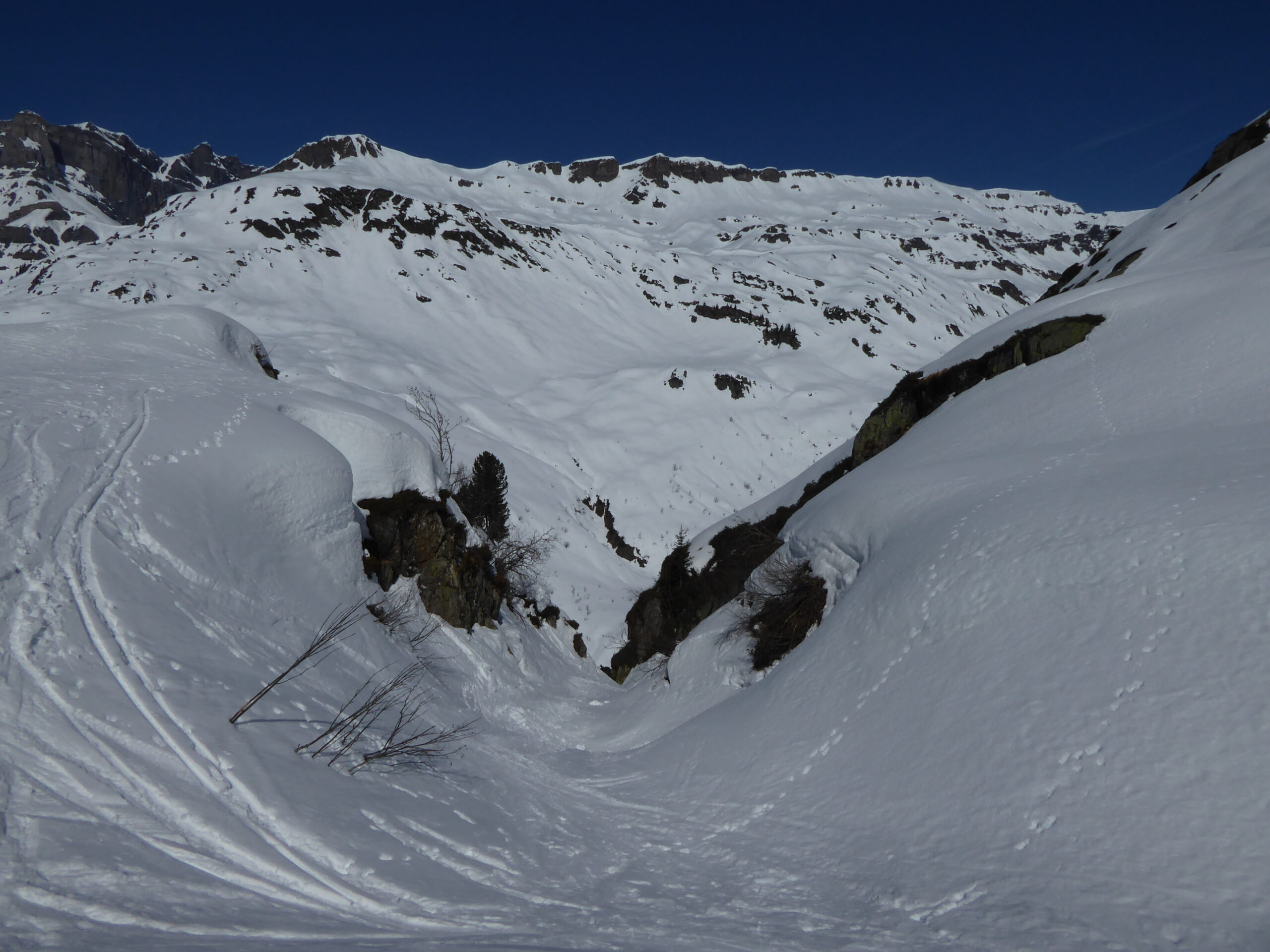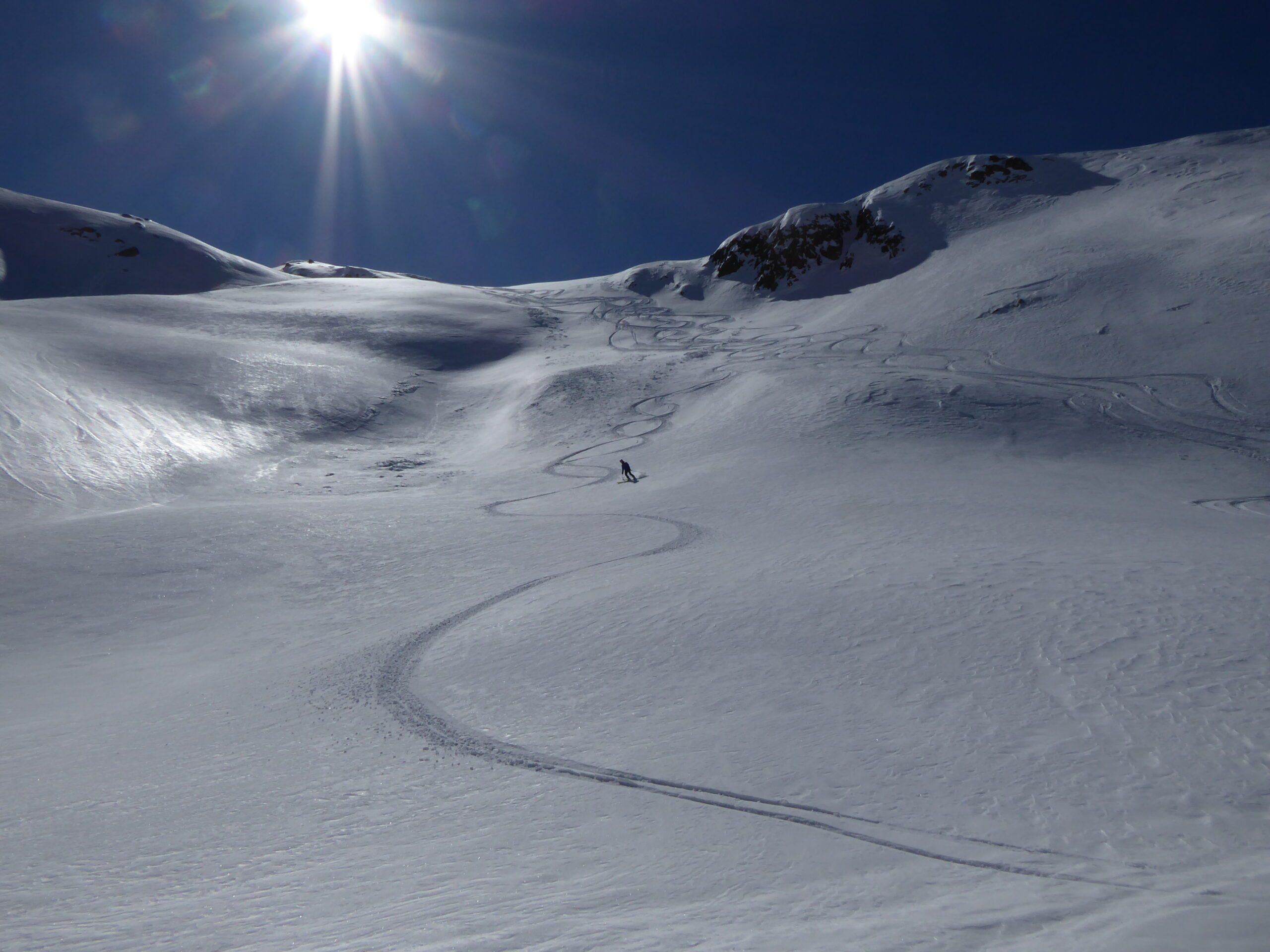 Encore quelques zones en poudreuse dans les orientations nord abritées. Dans les orientations sud la neige a transformé. Dans les orientations intermédiaires quelques zones de neige croutée.