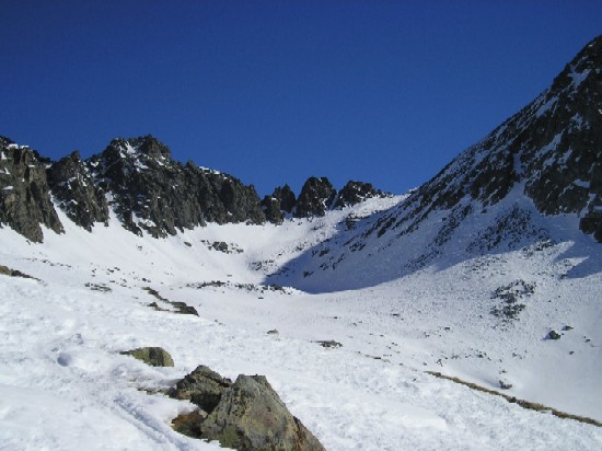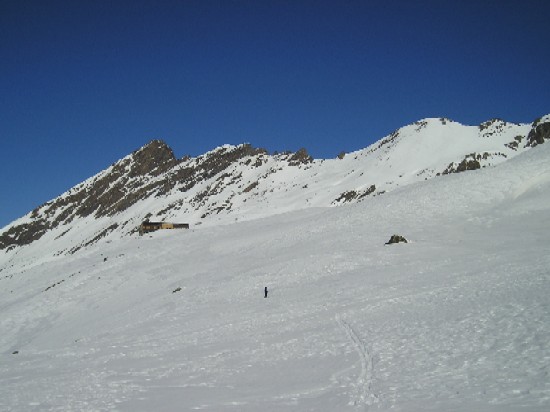 Bilan du Raid: Globalement , c'est beaucoup soufflé, donc neige frittée béton en Nord alternant avec des reliefs. Certains passages à l'abri du vent réservent toutefois des bonnes surprises. En versant ensoleillés, c'est de la vrai transfo uniquement en pentes Sud un peu raides, sinon c'est crouté le matin ou pourri dès que ca dégèle. Les couloirs nords du viso sont en glace (voir photos J2)