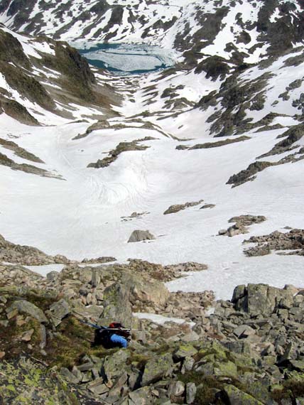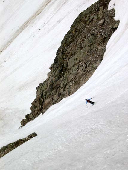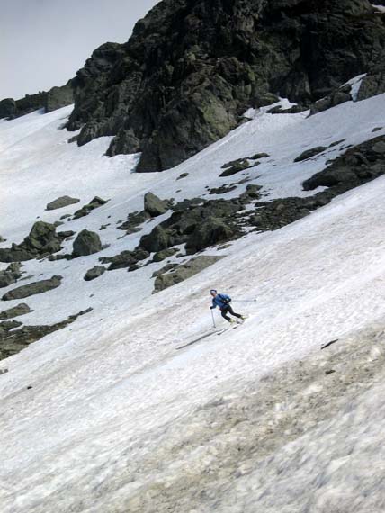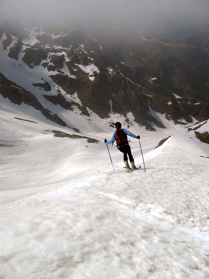 moquette sur névé à tous les étages. il fallait seulement partir assez tard pour ne pas être génés par le fort regel. La bonne surprise fut de descendre si bas en SUD (2080) alors qu'en face, en Oisans (Rochail, Renaud, Muraillette?) la limite neige en NORD est à 2700 au bas mot