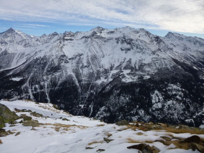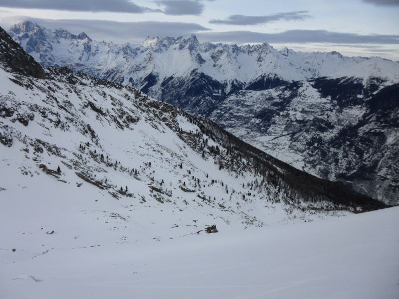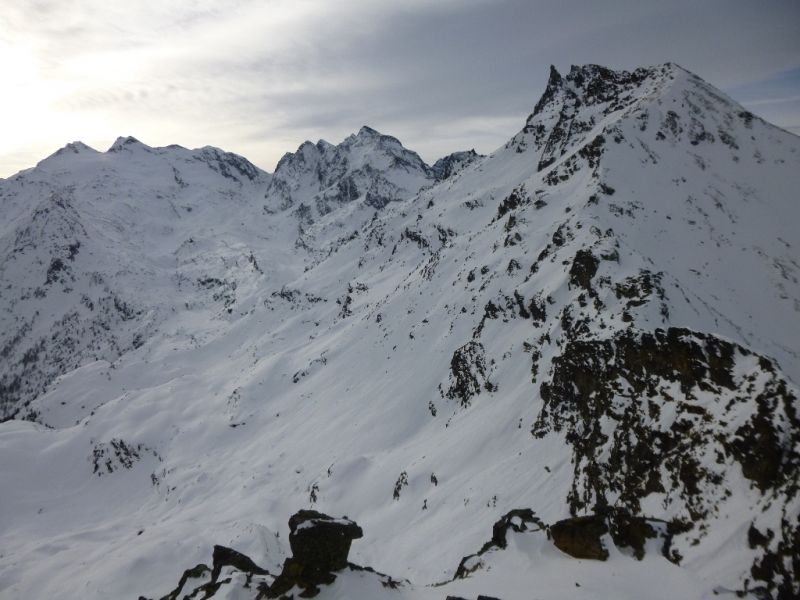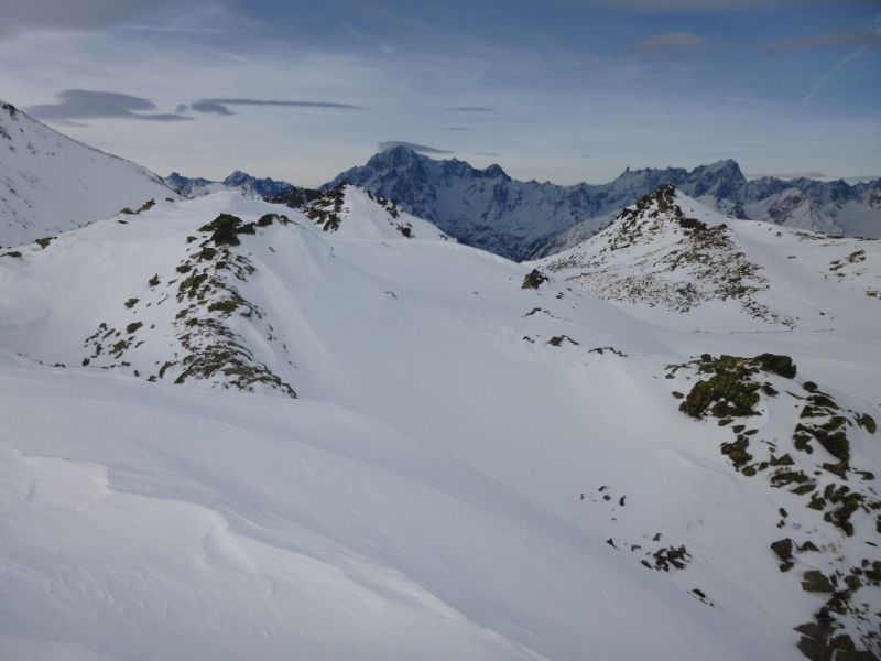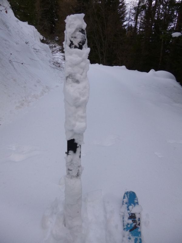 Encore un beau sommet panoramique. Montée pénible avec une neige très collante jusque vers 2000m. Descente agréable jusque 1660m. Très peu de glisse sur la piste forestière. En-dessous de Lazey, un engin est monté laissant deux rails dans lesquels j'ai retrouvé de la glisse.