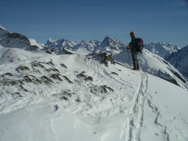 Sur l'itinéraire emprunté, c'est transfo sous 2300m seulement. Plus haut, on trouve soit de la poudre réchauffée en sud, soit poudre tassée en sud-ouest, donc globalement du très bon ski. De visu, ça se complique dans les versants froids qui sont chargés à bloc, avec de grosses avalanches parties un peu partout sous les crêtes Sud-est à Nord.