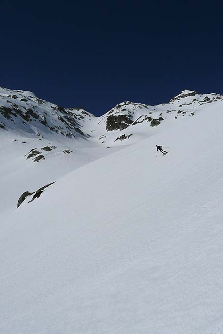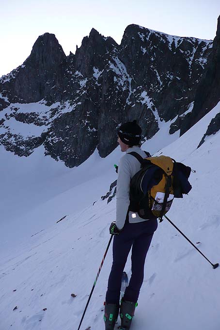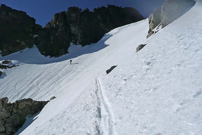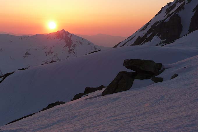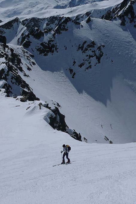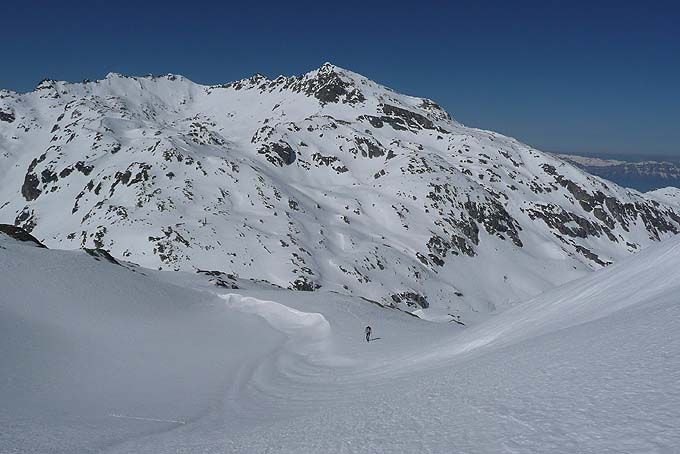 Risque 1. Pas d'évolution en risque 2 l'après midi en versants chauds compte tenu du froid. Neiges bien tassés en nord. S'il reste des plaques, ce doit être bien localisé. Conditions de neige optimales pour cette traversée, d'autant que les descentes offrent du TB ski. Enneigement très conséquent en nord Belledonne (gros paquet encore à 900 m).