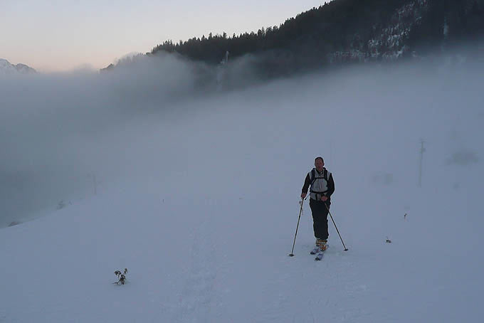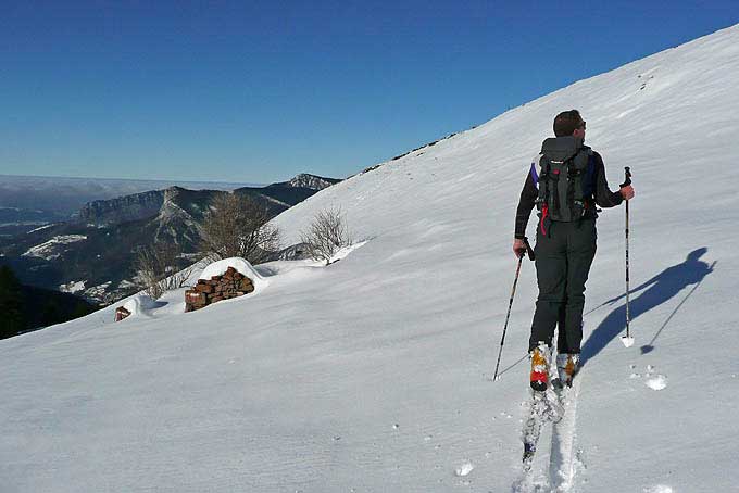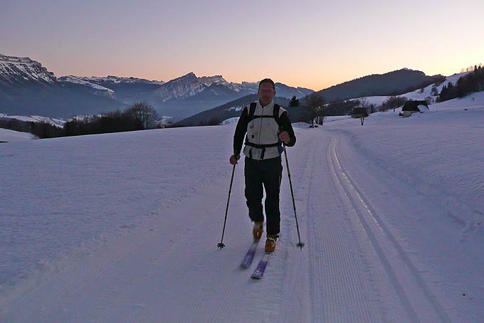 C'était un projet de longue date : le peu d'envie de faire du ski avec les conditions actuelles et un enneigement présent jusqu'en fond de vallée, m'ont poussé à le réaliser e jour le plus court de l'année. Le passage à Grenoble de Joël, compagnon de grande forme, était une incitation supplémentaire, bien que la neige n'étaient pas la meilleure pour optimiser : il a fallu tracer sur les hauts plateaux et aucune descente n'a été reposante pour les cuisses. Mais on a pu skier bas et profiter de portions bien damées sur des pistes de fond, au début et à la fin. Le dénivelé ne reflète qu'imparfaitement la longueur du voyage : c'est pas tous les jours qu'on fait plus de 70 km de ski de rando.