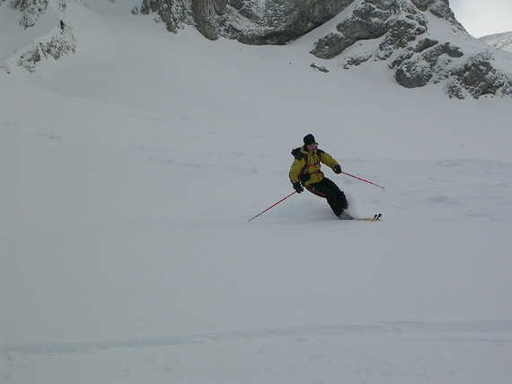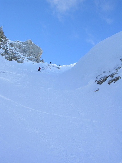 Ca sentait encore le crash météo mais le soleil l'a emporté. Toujours une superbe ambiance dans le couloir, enfin réussi pour Dav'!!! Le haut en neige dure avec un bon grip, puis ensuite des contrepentes bien poudre?