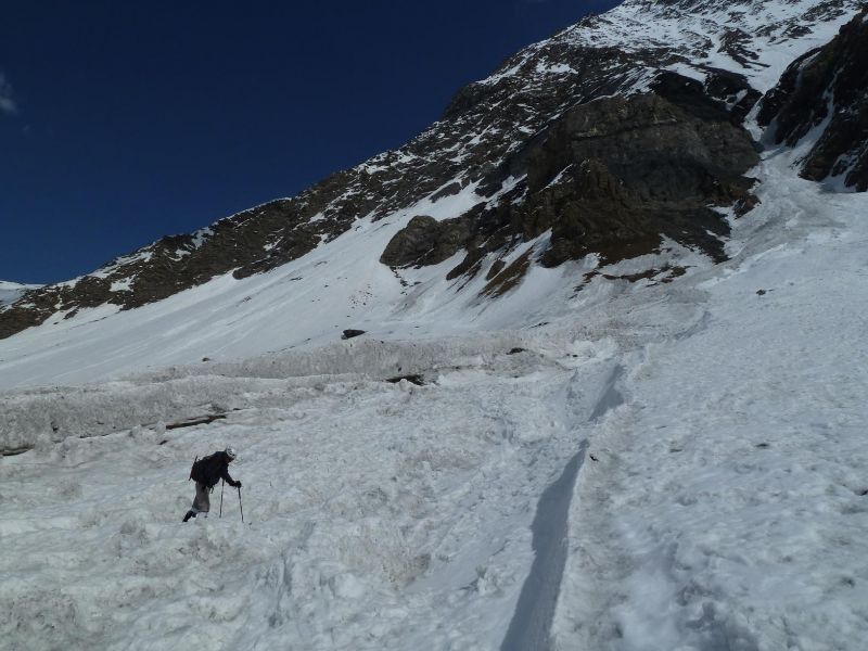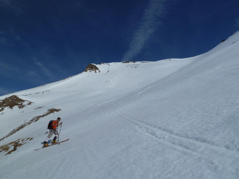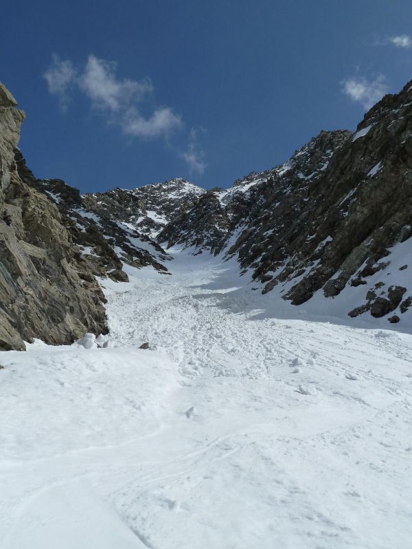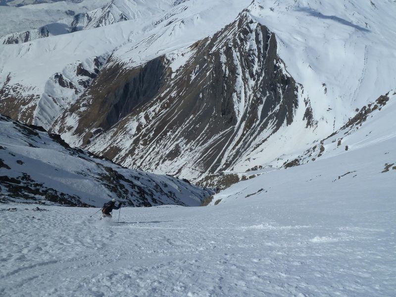 Des conditions optimales dans la partie supérieure du couloir nord-ouest, un peu plus délicates plus bas, en navigation entre une rive gauche froide, une goulotte centrale et une rive droite plus chaude.