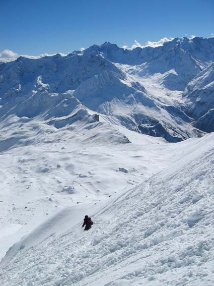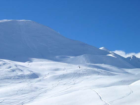 mini sortie bien agréable avec une belle poudreuse : enfoncement au fond à pied, mais seulement 25 cm en moyenne à ski. On touche peu les cailloux si on regarde et qu'on ne va pas trop vite. petite croute de surface en face sud raide (>30°). Très localement, entre 2600 et 2500 m, sous la derniere poudre une petite croute cassante.