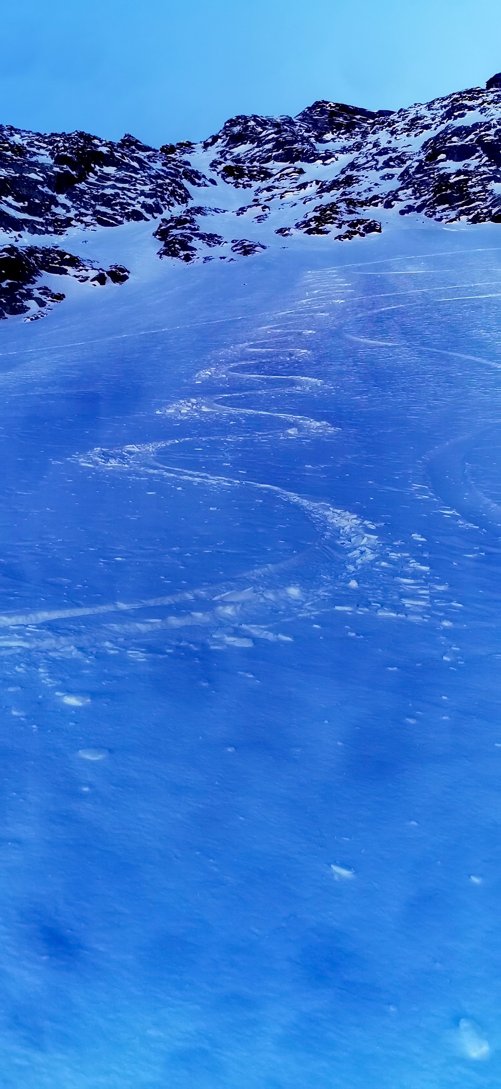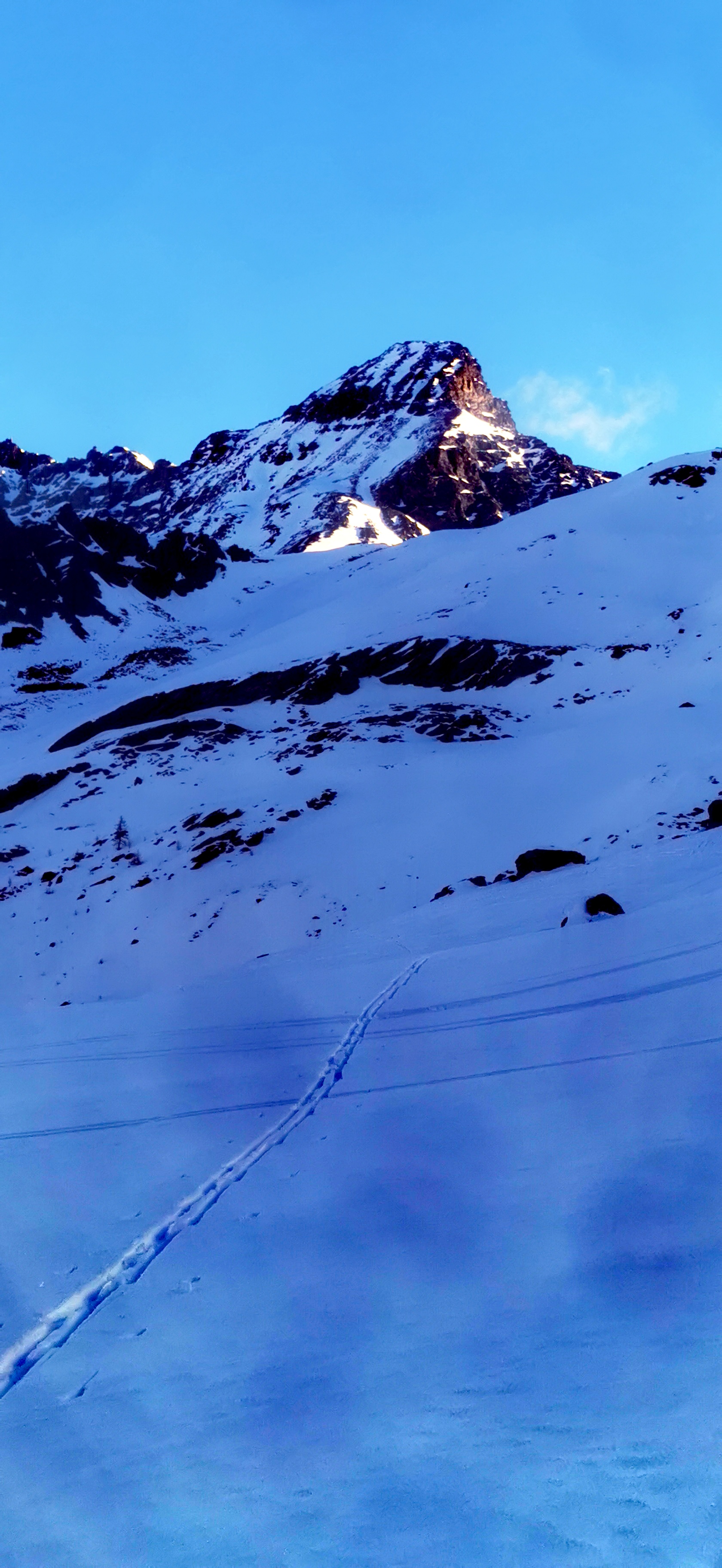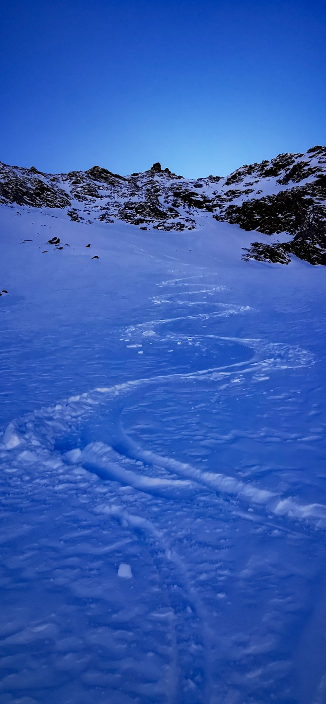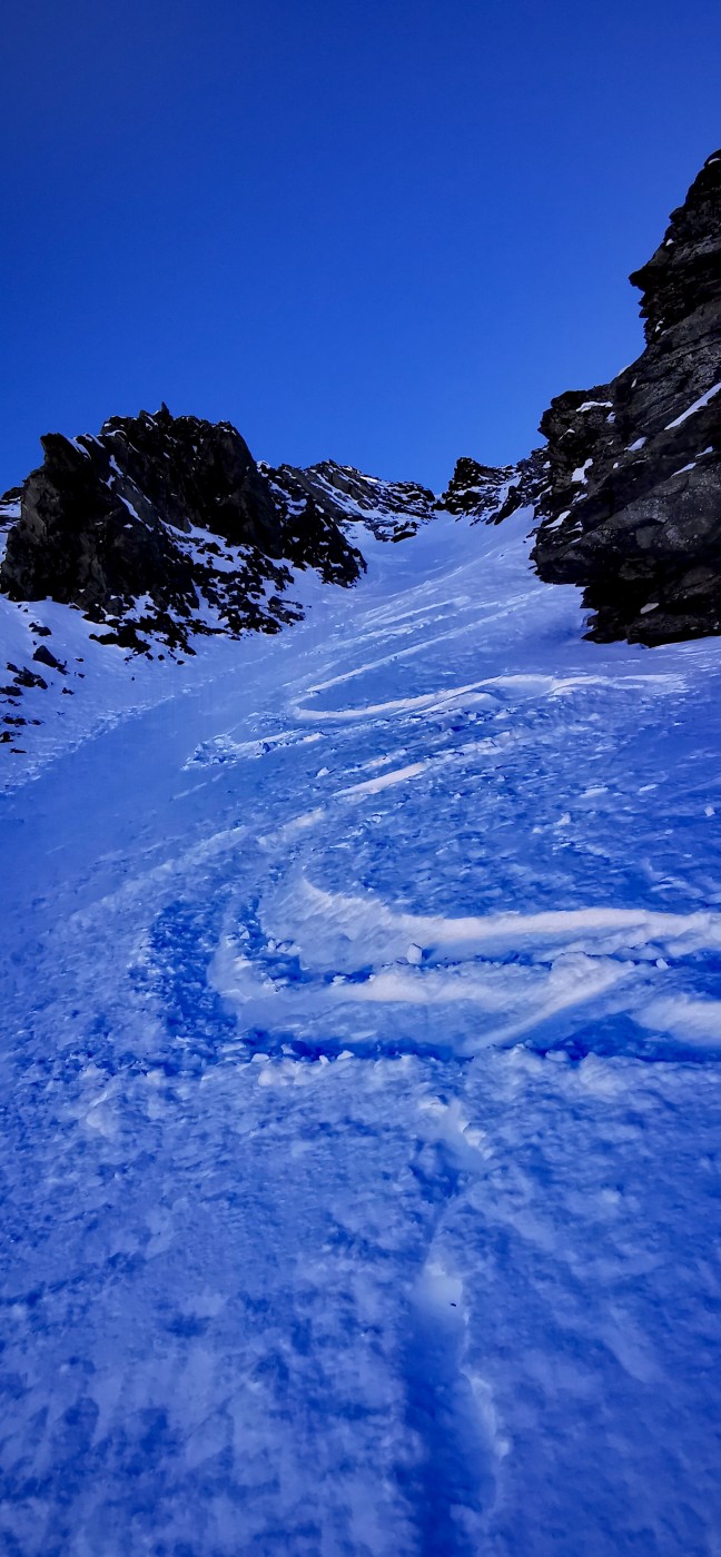 Merci à mon pote Jean-Christophe qui est allé au couloir N de Tsambeina la veille. Trace de montée impeccable et excellente skiabilité.