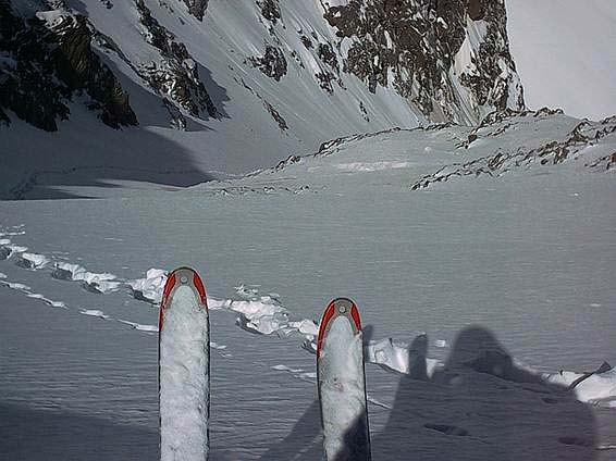 Une goulotte s'est forme dans le couloir entre 2800 et 3000, facilitant la progression a la montee. Il reste de la place sur les contrepentes, un chouia plus raide. La rimaye est bouchee, mais le pont est bien mou !