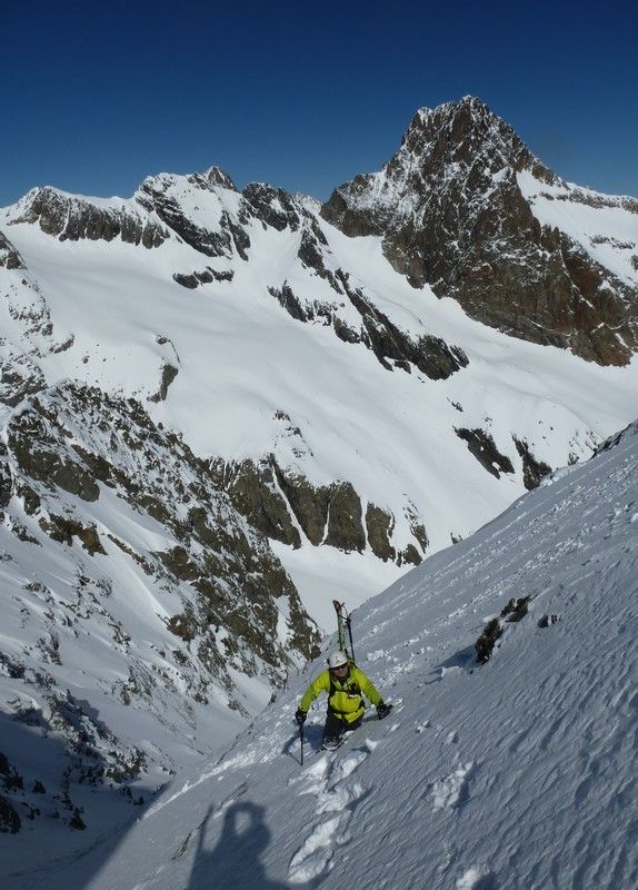 Une bien jolie pente en excellentes conditions. Peu de monde dans le vallon et vue personne dans tous les versants nord du Chardon. Autres impressions et photos [ici-> http://lesbertonches.over-blog.com/2014/05/coukoir-occidental-du-vaccivier.html]