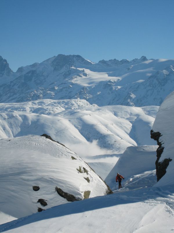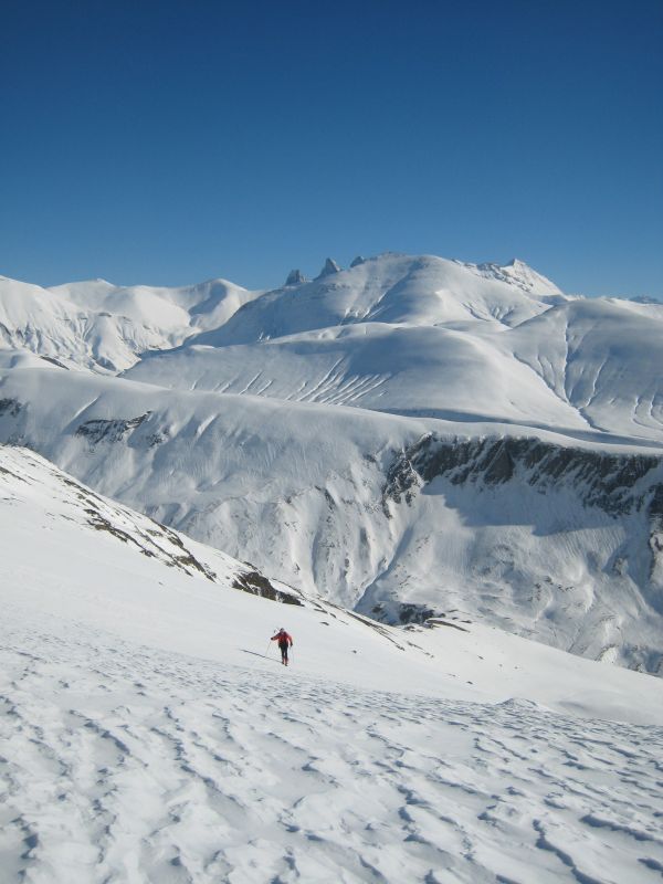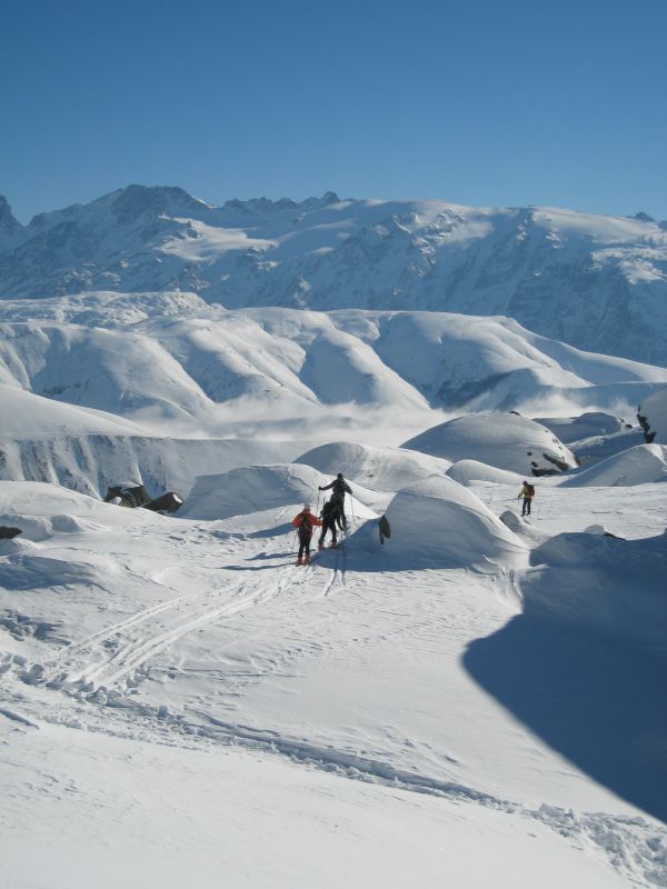 partis pour un tour horaire, l'objectif convoité se trouve hors de combat, d'où ce repli. Deux nous ont précédés et continuaient (Etendart?). Reprises hélico d'un groupe très haut dans le vallon (pour éviter la traversée sous sarenne).