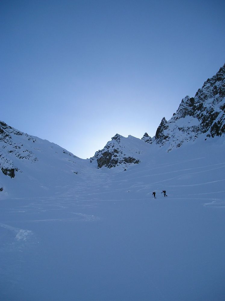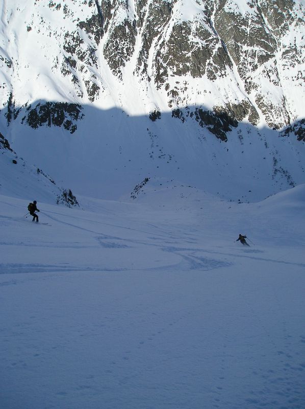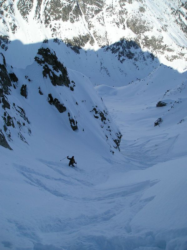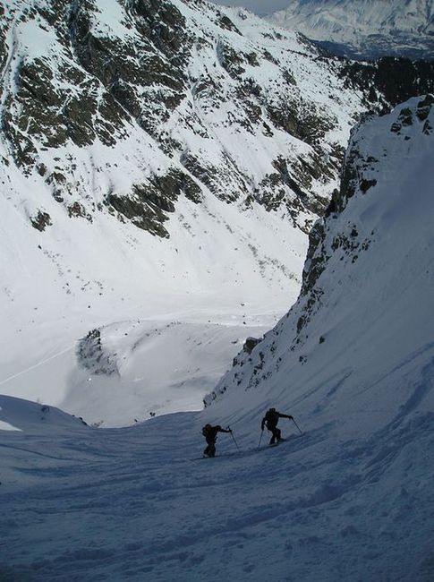 Il a plus neigé de ce côté de Belledonne. Neige très peu soufflée. Dans le couloir avec moults passages elle est devenue bien tassée par endroit mais ça reste très bon.