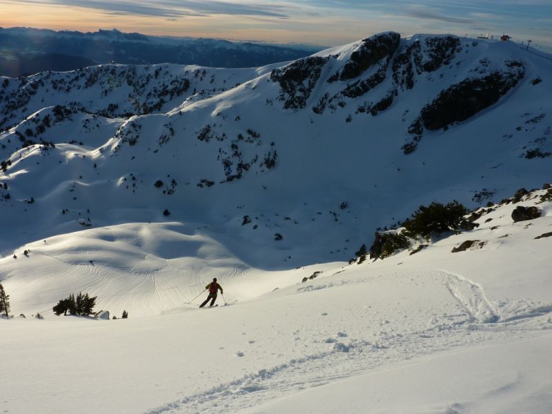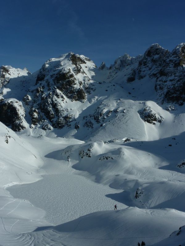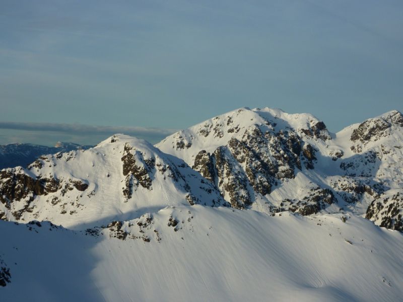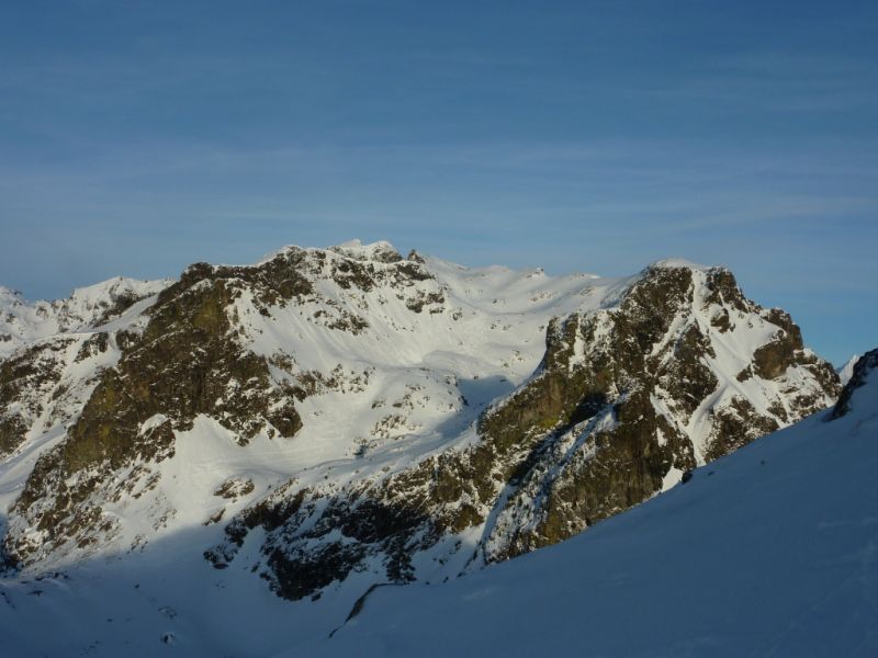 L'enneigement fait plaisir à voir mais le manteau est bien détrempé jusque vers 2000m environ. Au dessus c'est croute cassante à l'ombre et au soleil de la lourdasse pas désagréable. Des petites purges au soleil un peu partout sans grande activité.
