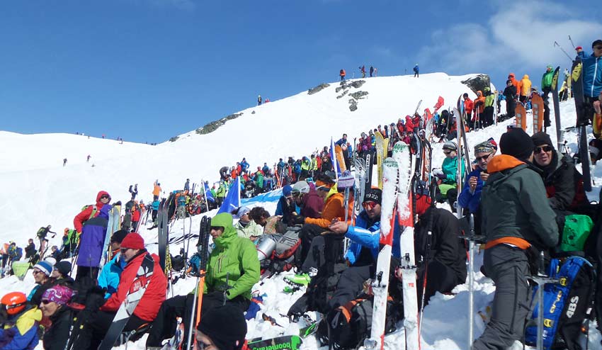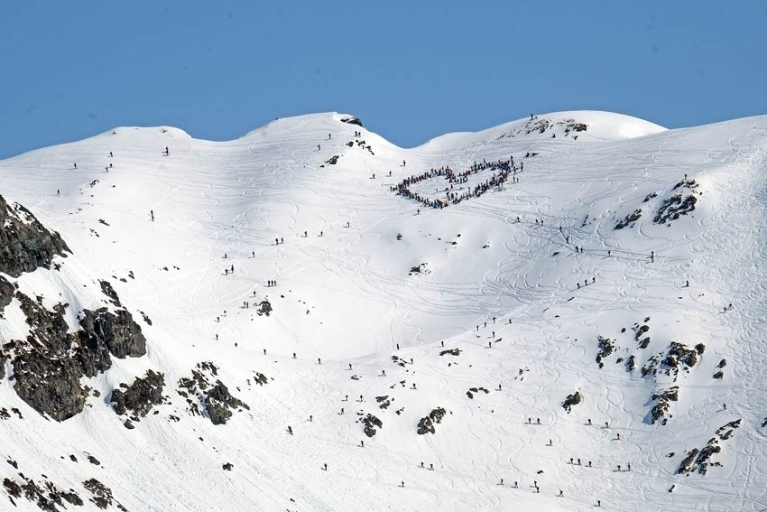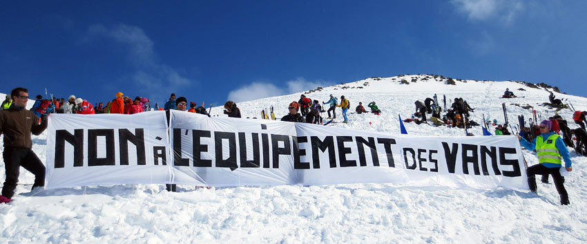 Environ 600 randonneurs, à skis ou raquettes, de 7 à 77 ans (à la louche) se sont retrouvés au sommet des Vans pour y former un cœur. Ambiance détendue mais propos et engagement déterminé pour ne pas se laisser confisquer cette montagne naturelle par des remontées mécaniques supplémentaires.