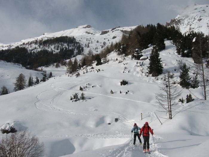 On ne pensait pas que les nuages déborderaient autant, donc plan de repli en direction du soleil, plus à l'est du champsaur. Les giboulées nous rattrapent dans la 1ère montée mais nous y croyons et le reste de la journée s'est fait sous de larges éclaircies. Bonne surprise dans la descente de la prouveyrat, que l'on pensait inskiable: finalement en attaquant en virages courts, on arrive à se faire plaisir, mais la moindre faute est fatale pour les cuisses!