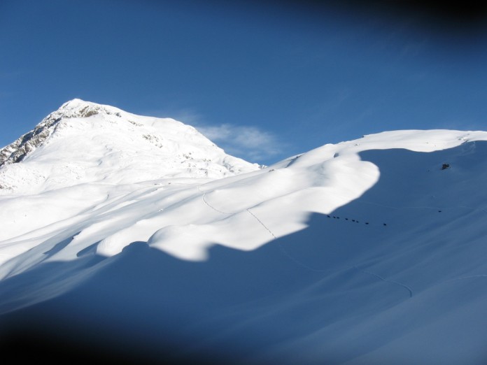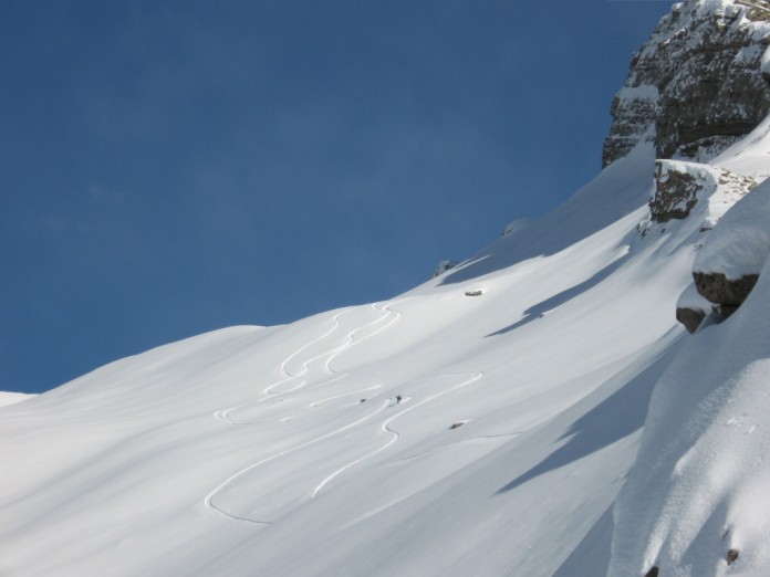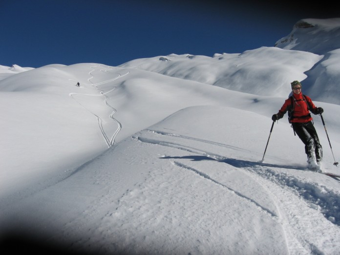 Ski excellent, avec des quantités vraiment importantes au dessus de 2400. Dommage que la limite skiable soit si élevée car tous les sommets du coin sont bien platrés et pour le moment le vent n'a pas ravagé les pentes. Une nouvelle chute à basse altitude pour éviter les portages serait la bienvenue...