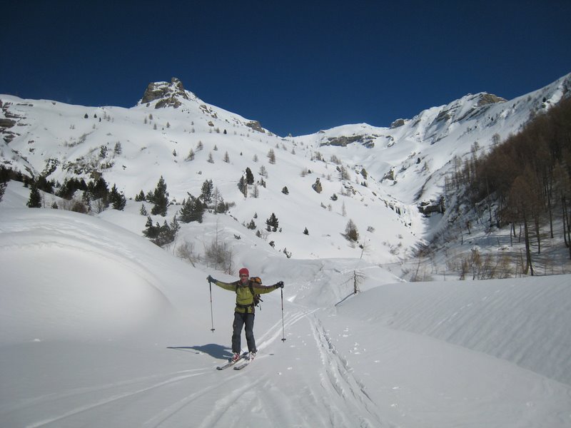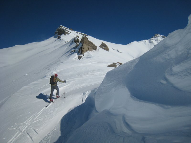 Montée classique, à la descente du col de Riou Beyrou, descente SO dans le fameux half pipe, jusqu'à 2100m, puis remontée au col de la Pisse.