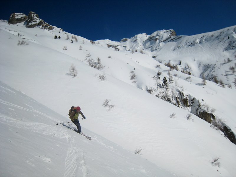 Le Bulletin nivo, prévoyait que ce ne serait pas du grand ski, ce le fut. On skia quand même, mais ce fut fatigant...Changement de neiges incessants. Le versant sud du col de laPisse fini par transformer, un peu.