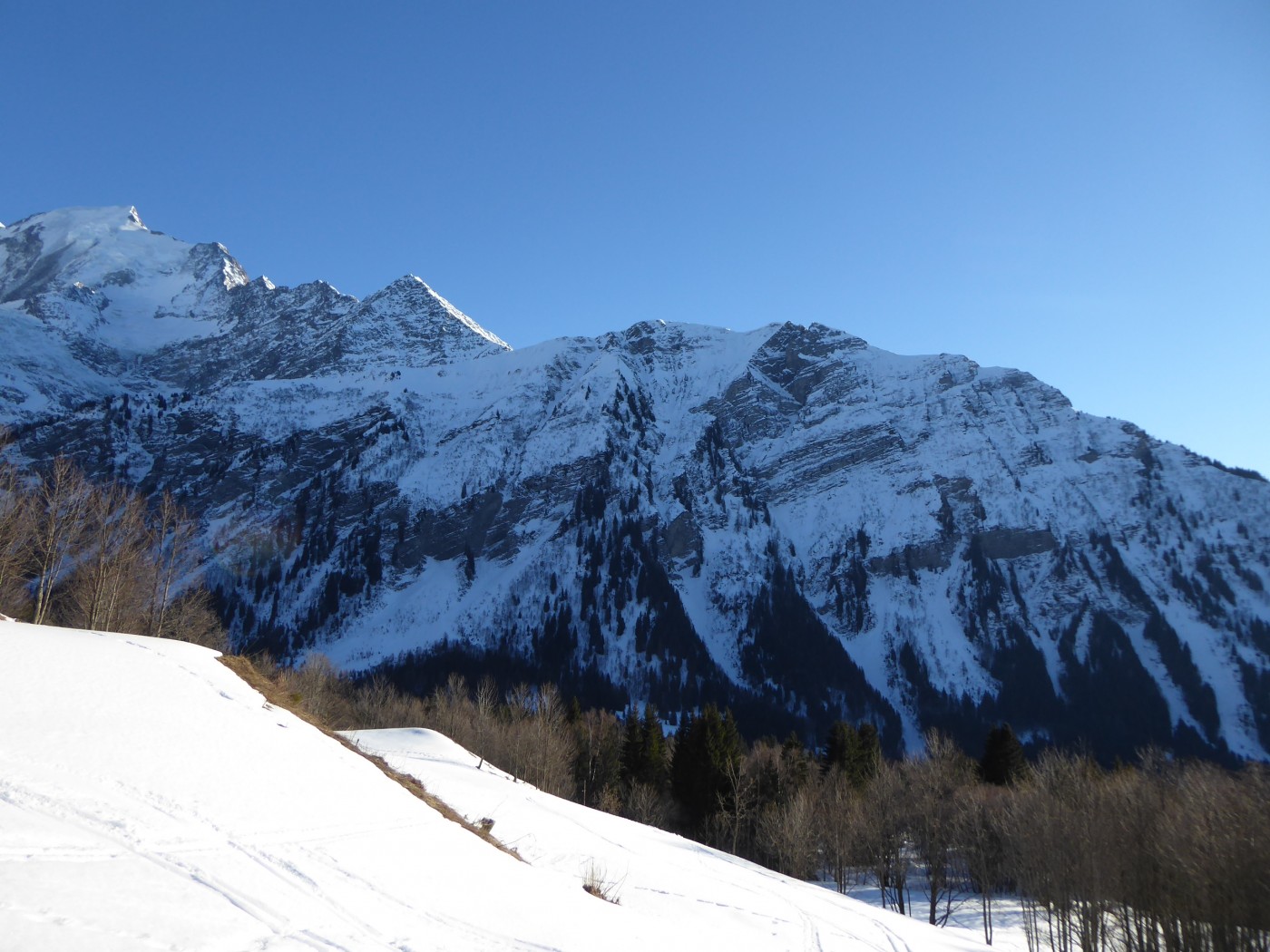 L'accès par Bellevue permet de réaliser ce tour depuis la vallée de Chamonix sans avoir à prendre la voiture. Le sentier entre Bellevue et le chalet de l'Are est déneigé par endroits mais ne nécessite pas les crampons. Quelques déchaussages nécessaires sur la piste qui descend à la Gruvaz, idem dans la montée entre la Villette et le Champel